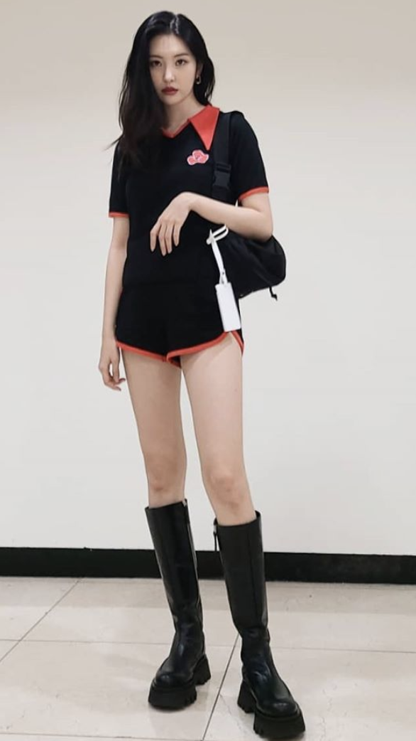 Twice的后辈团itzy延续girl crush路线,选择颜色更加跳脱、印花更加大胆的款式,整体感觉更偏帅气。