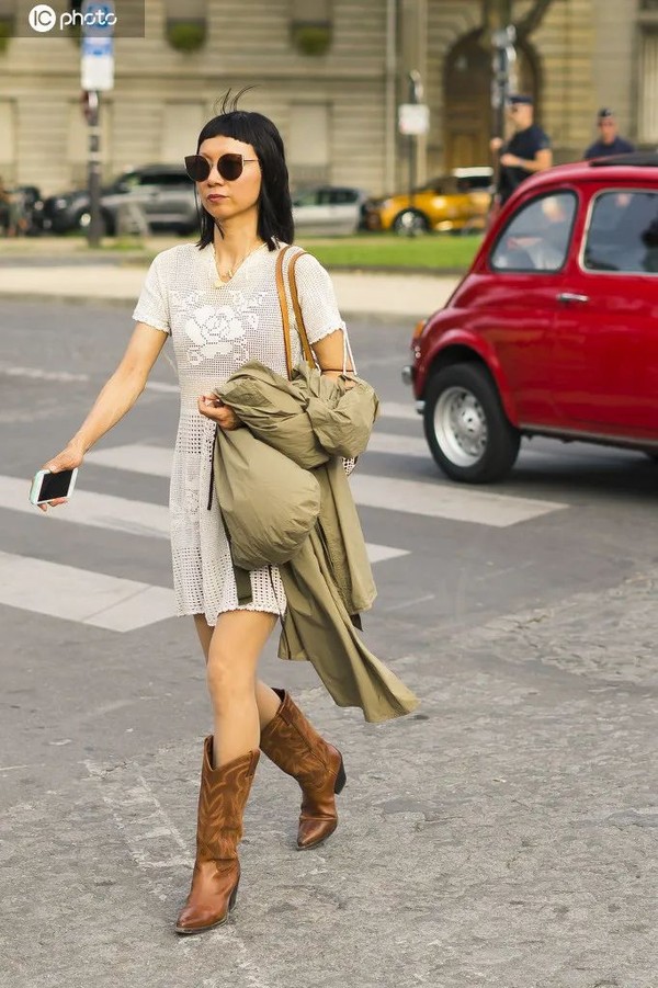 牛仔靴的靴形挺阔,自带“西部牛仔”气质,不管配上什么类型的衣服,都能让你变得“野”起来。
