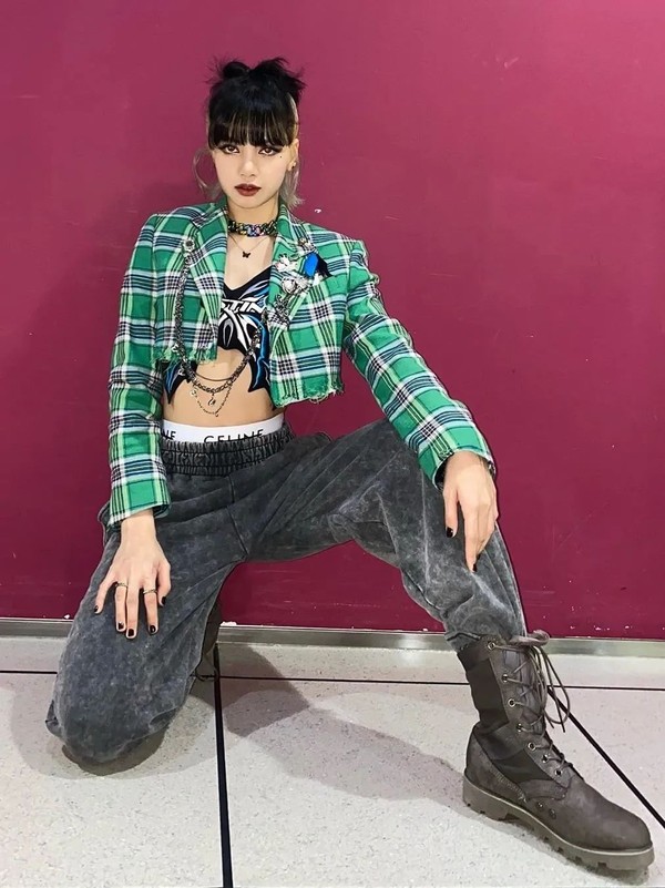 也可以学辣Lisa,把宽松的裤腿扎进靴子里,机车少女的感觉呼之欲出。