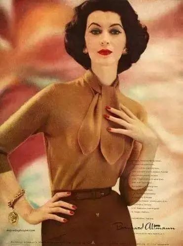 50年代迪奥进行了更大胆的改变,配合自己廓形的优雅剪裁,迪奥一改领巾的柔媚,将其带变得挺括利落,让女性的形象兼有的优雅与力量。