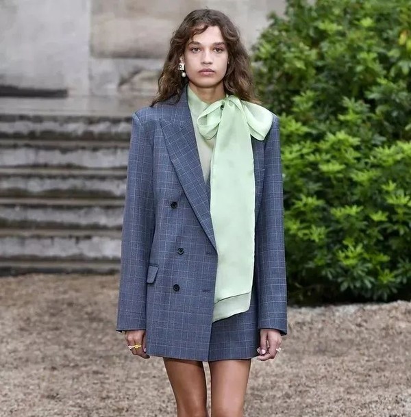 这套经典的look沿用至今,直到现在每一季的新品都会有西装和领巾的搭配,而这不仅仅是一个经典搭配,更像是一个女性力量的文化符号,在女性力量又被推向高峰的今天,这样的打扮方式势必又将卷土重来。