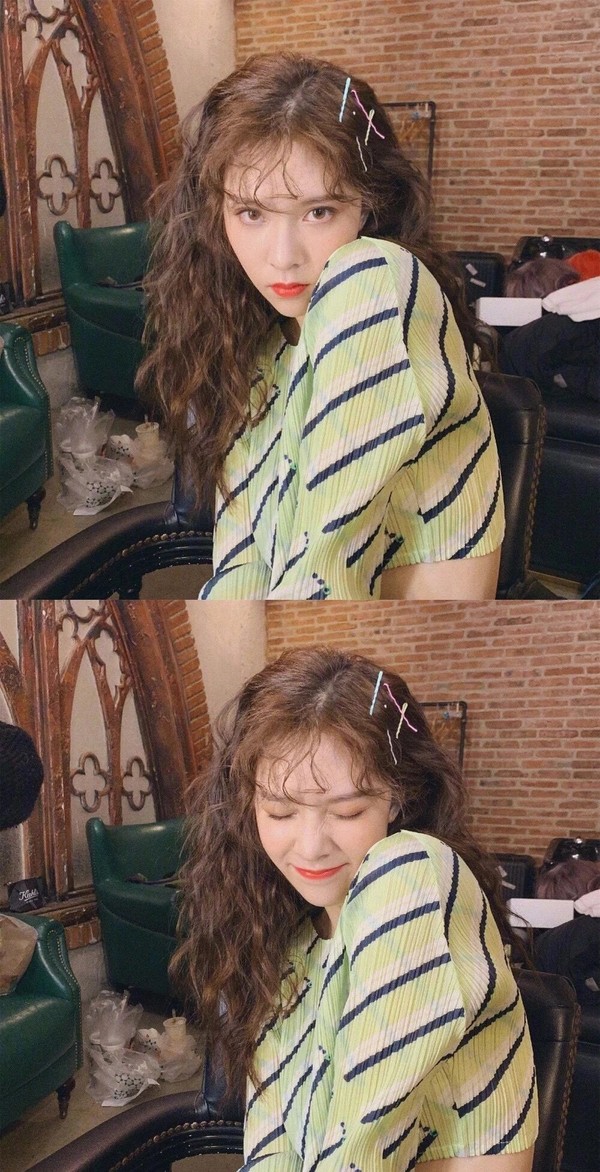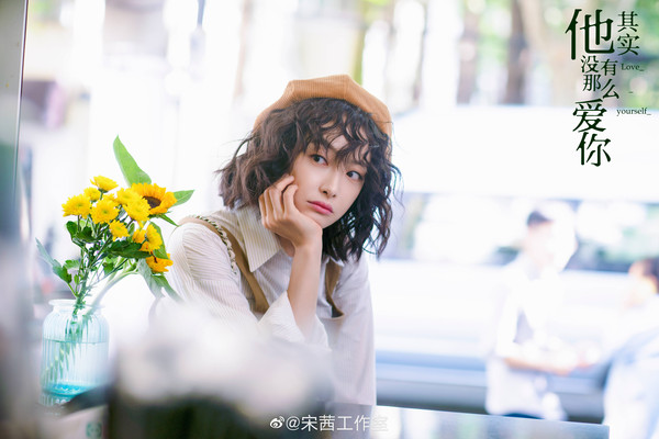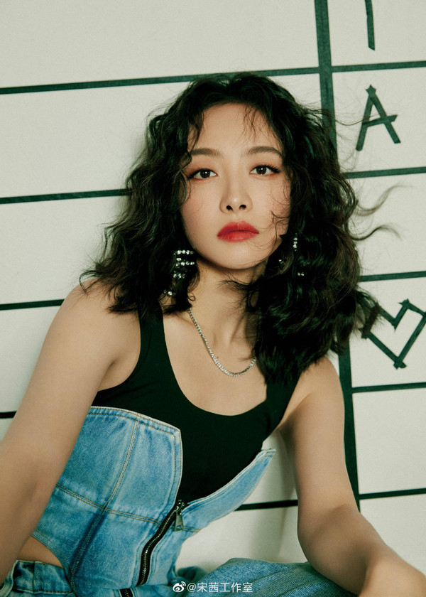 宋茜蓬松柔软的卷发堆砌在额头上,软萌可爱,自带慵懒感。