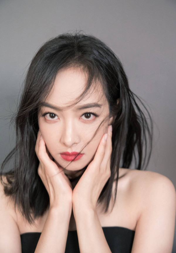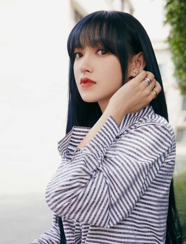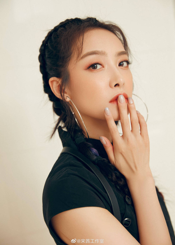 宋茜很善于用刘海来突出五官优势,空气刘海可以挡住额头,让人的注意力集中在她三庭中相对较长的中庭,眼光聚焦在弧度完美的鼻子和明亮的眼睛上,完美放大五官优点~
