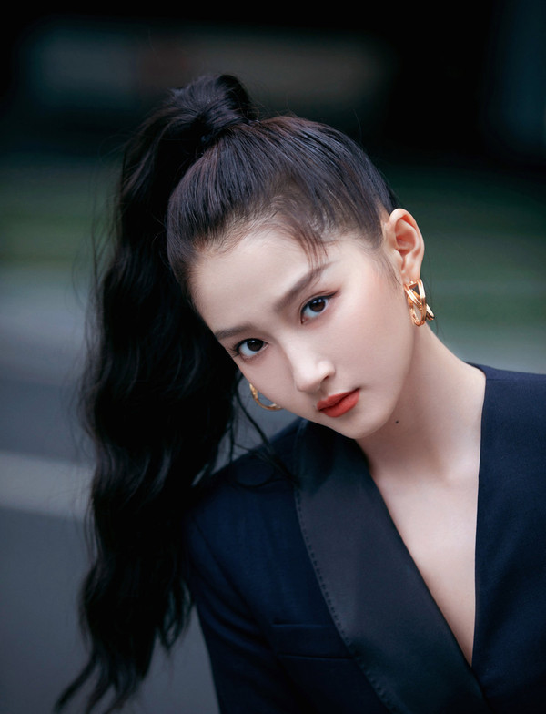 单纯的高马尾扎发、丸子头,露出大额头会比较容易显脸大,那我们可以有曲线救国的方法——松散的龙须刘海,从额头两侧分出来的一小戳龙须刘海,可以起到修饰脸型的奇效,剪完这款刘海,瞬间get “脸mini”蜕变~
