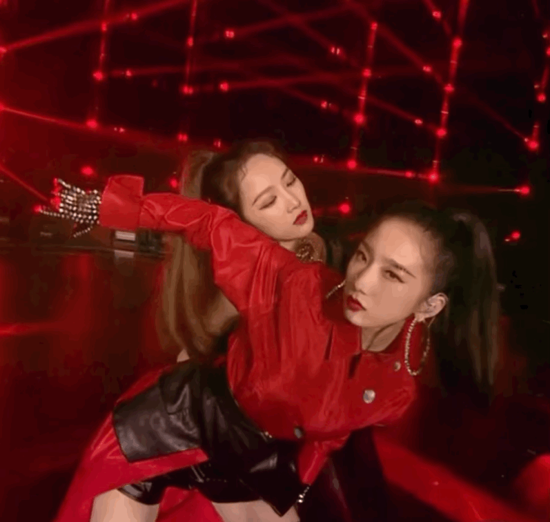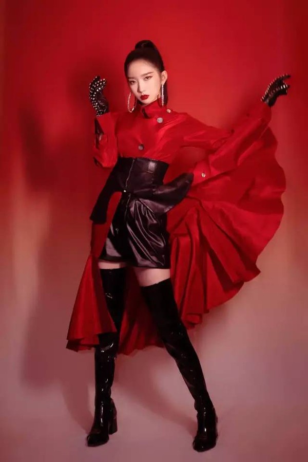 《MUTE》打歌中,也频频出现黑色红色皮手套,看来皮手套已经成为了孟美岐的一个必备单品了!