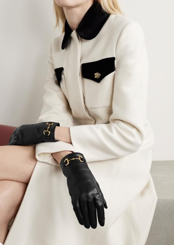 当然,也不能忘了最经典的皮手套复古穿搭。一些一线品牌的标识性logo放在皮手套上更有品牌特色,也增加了整套look的复古感。