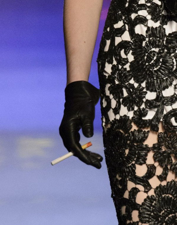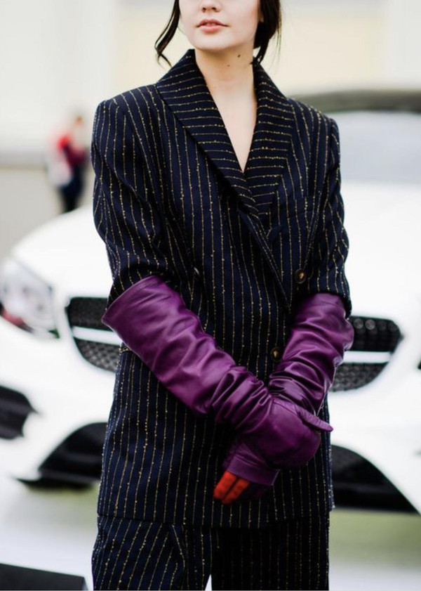 条纹西装里也不可以少了皮手套。单调的颜色搭配一个亮色皮手套。总归有你想不到的惊喜!