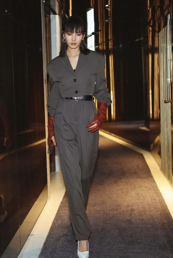 最典型的叠穿就是西装加皮手套。让酷女孩更酷上一层楼。艺人王紫璇用复古西装配复古色的皮手套,让人对胳膊部位眼前一亮。