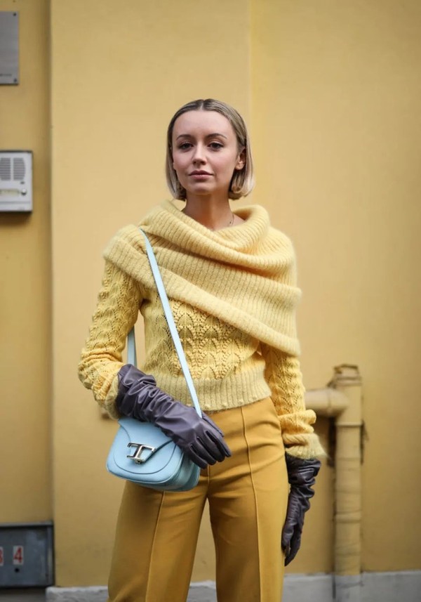 平日里,不少博主也用皮手套与内搭搭配,让整个look显得更加不一般。