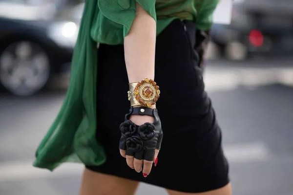 日常必备的那双手套我们最经常见的就是冬日里的一双短款皮手套了。出门总是忘了戴,却总能让我们整个穿搭显得与众不同又更加保暖。皮手套也已不再是赫本风的代表了,不论穿什么风格搭配,皮手套的存在都不会显得多余或累赘。就算冬天戴一副长款皮手套,露一个边儿,也不仅给手臂多加了件“衣服”,还让整套穿搭看起来与众不同。