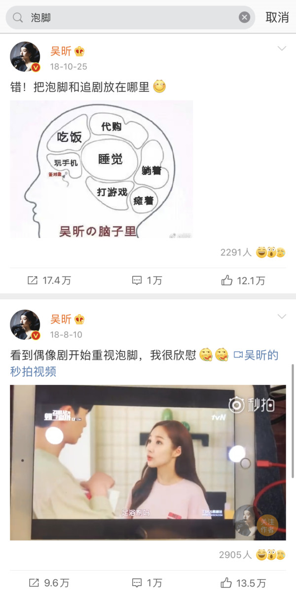 泡脚的好处,这可得听“泡脚宣传大使”昕昕子和你好好唠唠了。毕竟她的微博,“泡脚”可以说是出现频次hin高的关键词了。