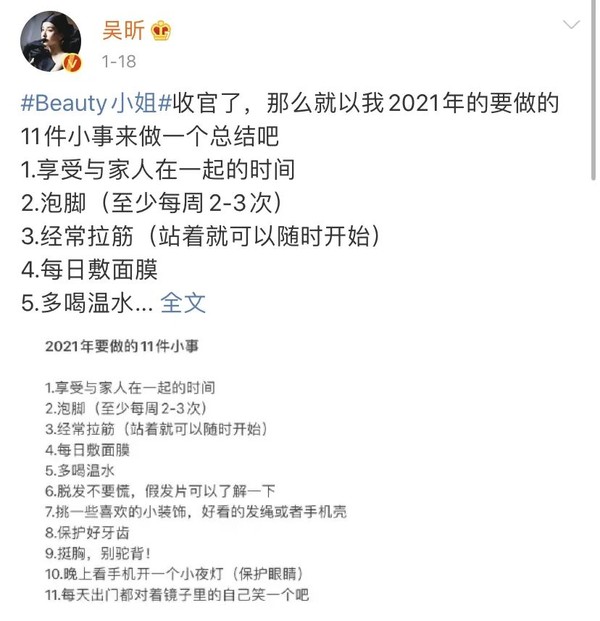 看,养生达人·昕在新年计划里,也不忘给“泡脚”排名。除了这个简单的养生方式之外,拉筋也是她的日常必备功课。