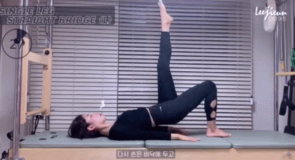 最后这步和第二步有点类似,不过是腿部伸直,脚尖绷紧,然后进行单边抬臀动作。同样还是要腰臀抬起,和大腿保持一条线。
