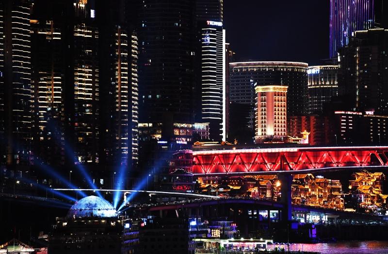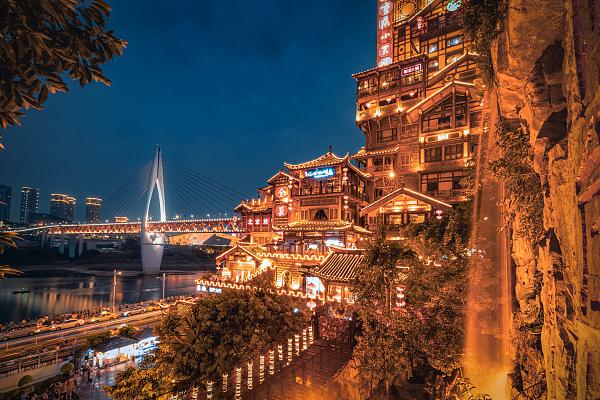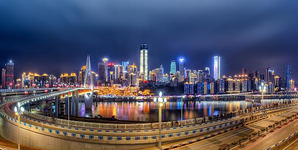 重庆三面临江、一面靠山,独特的地形造就了城市依山而建、建筑层峦叠起的独特风貌。