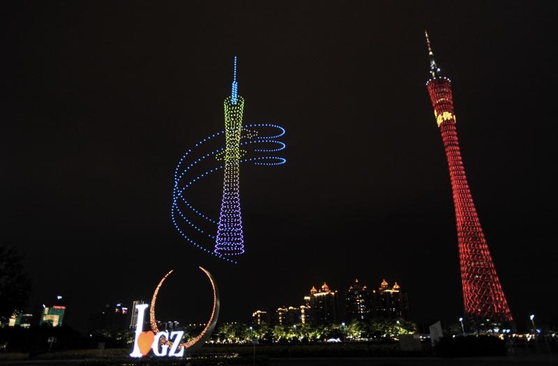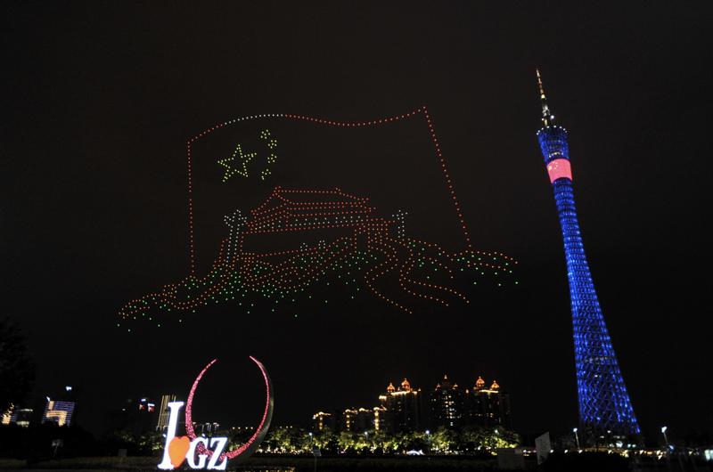 为庆祝双节,广州还特地献上无人机表演,让原本的热闹非凡秋日夜空,再添一份活力。