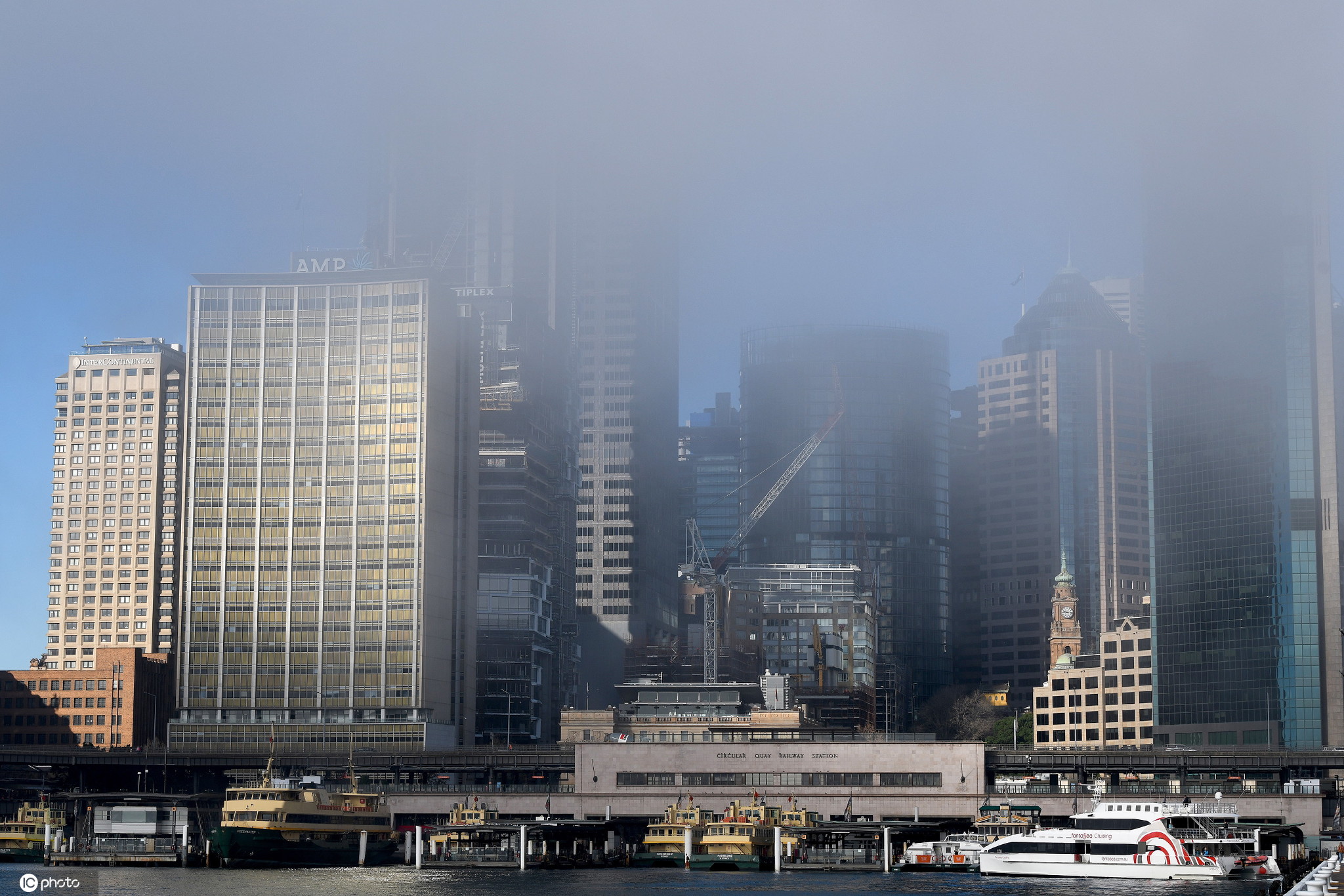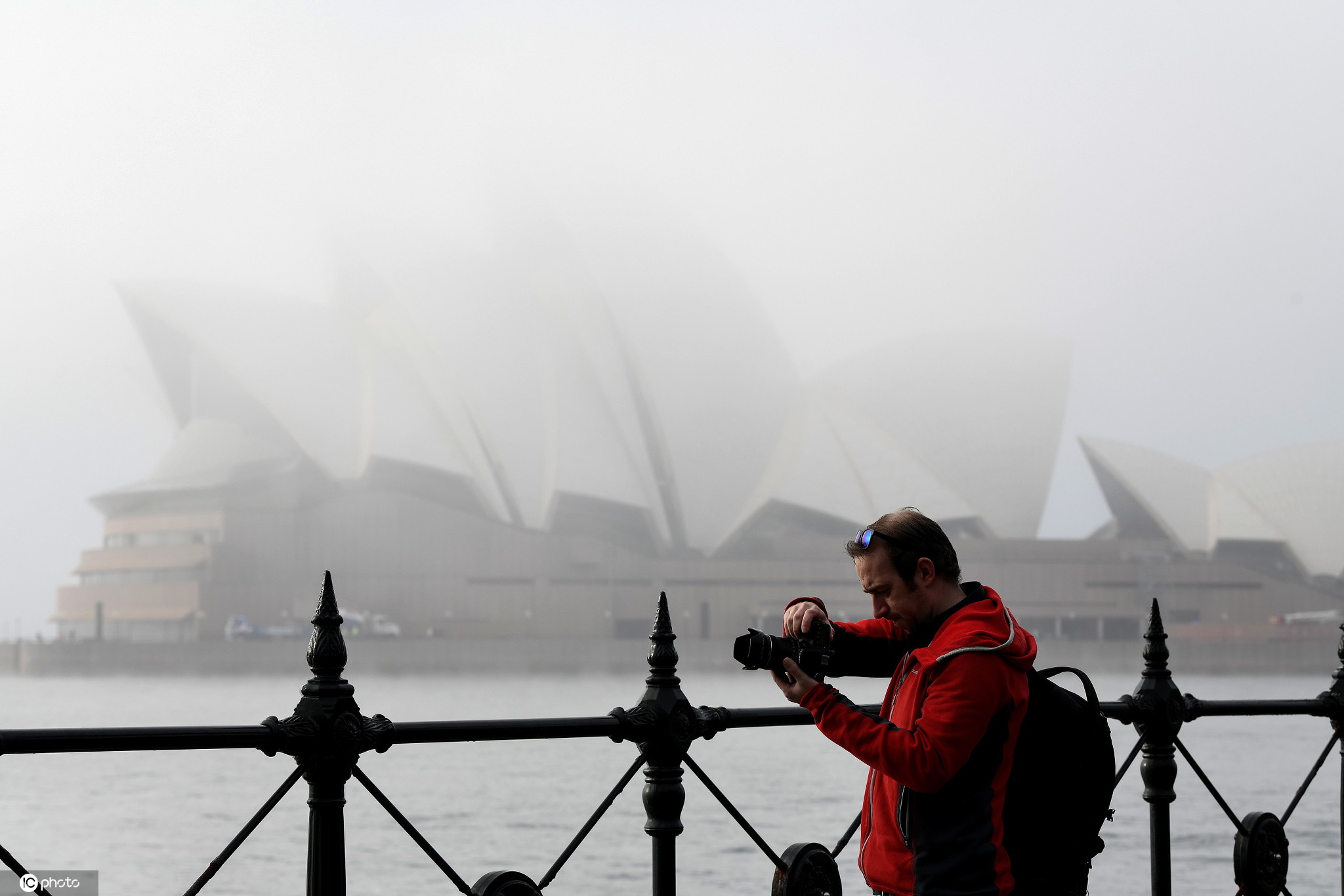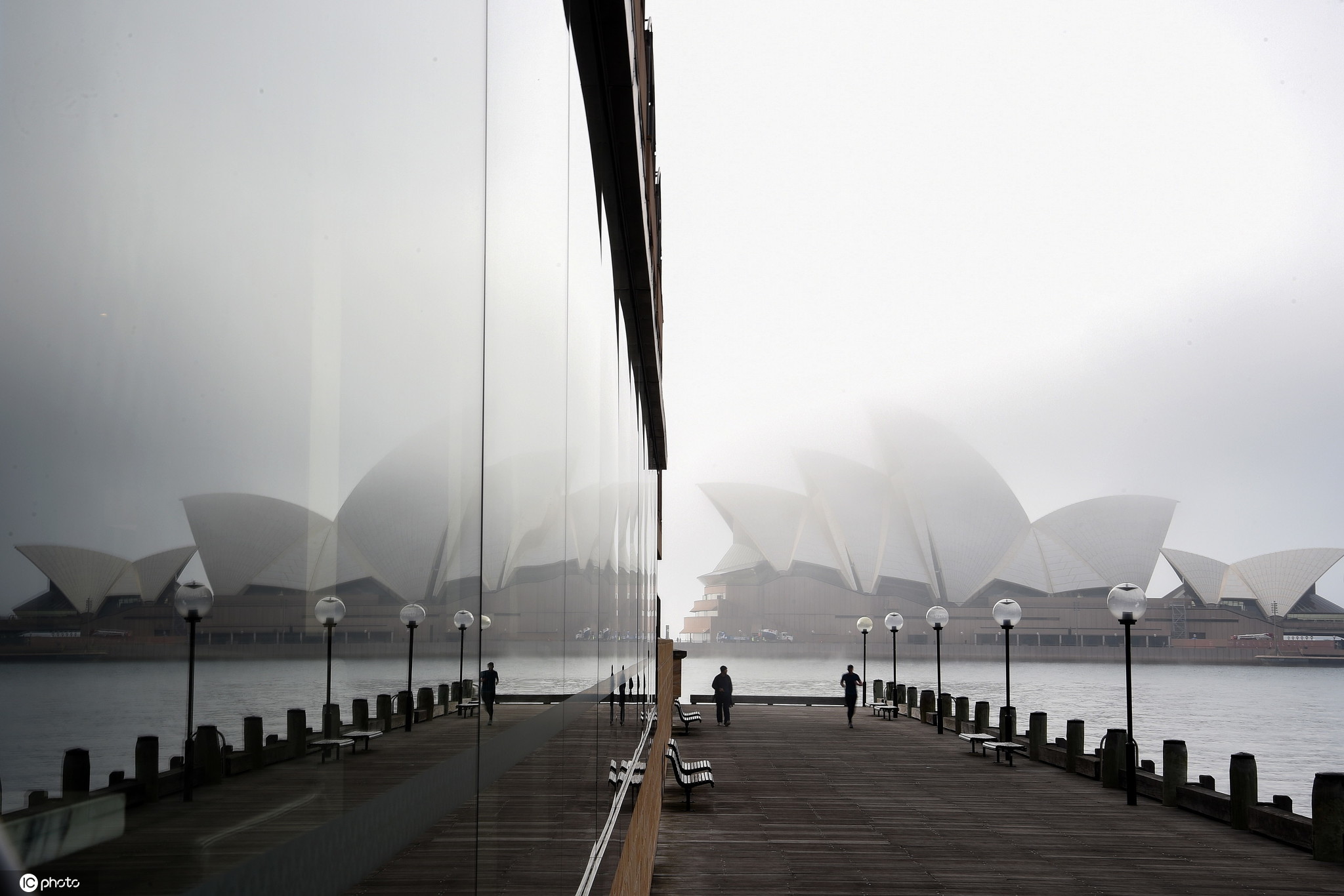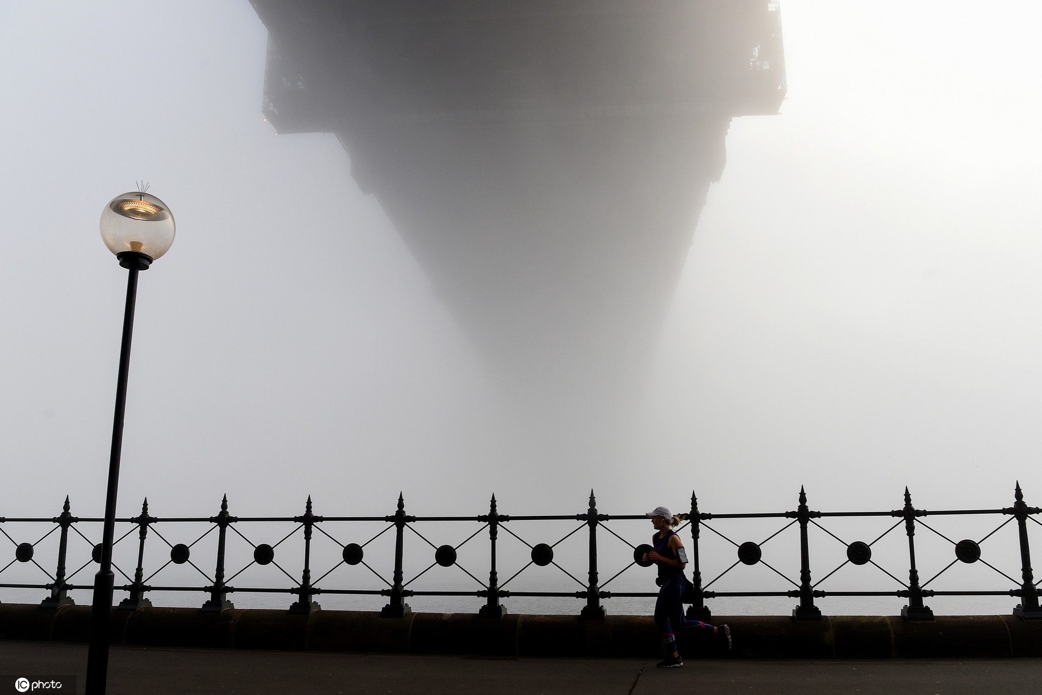 当地时间2020年6月20日,澳大利亚悉尼,当地晨雾浓浓,悉尼海港大桥和悉尼歌剧院在雾中若隐若现。