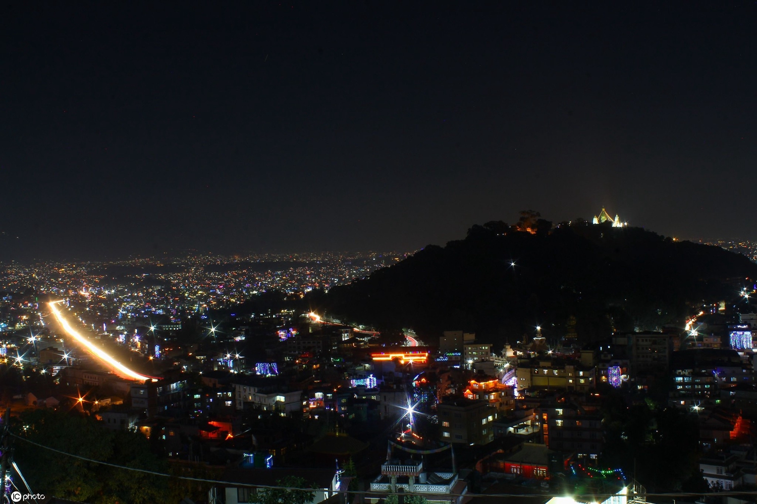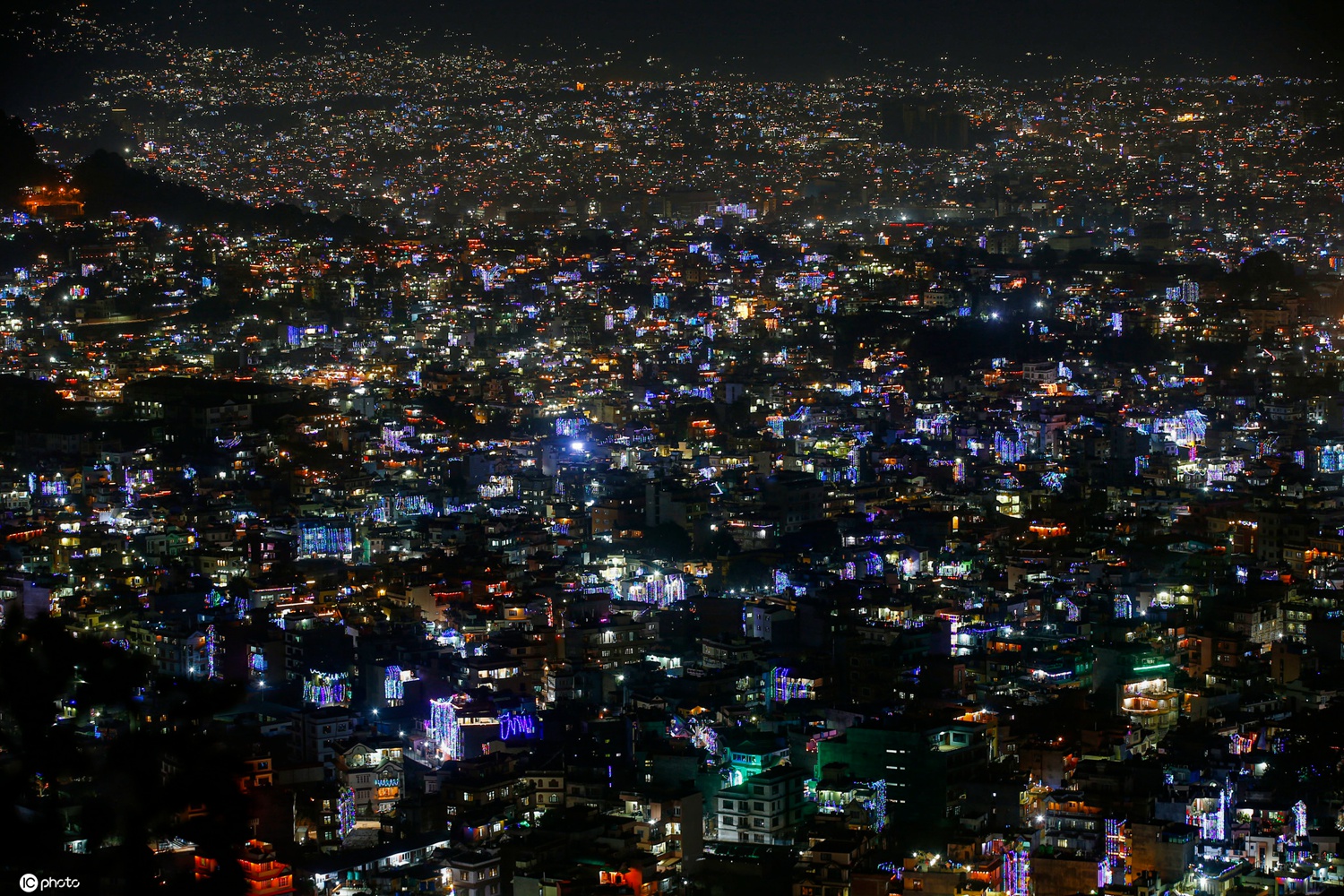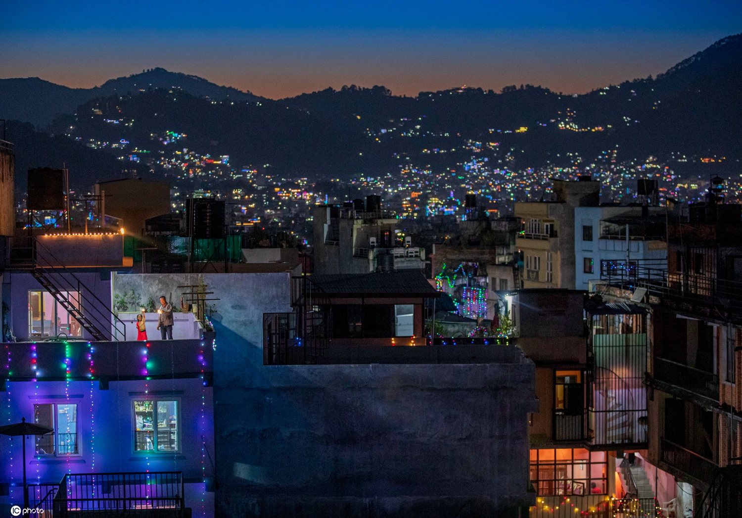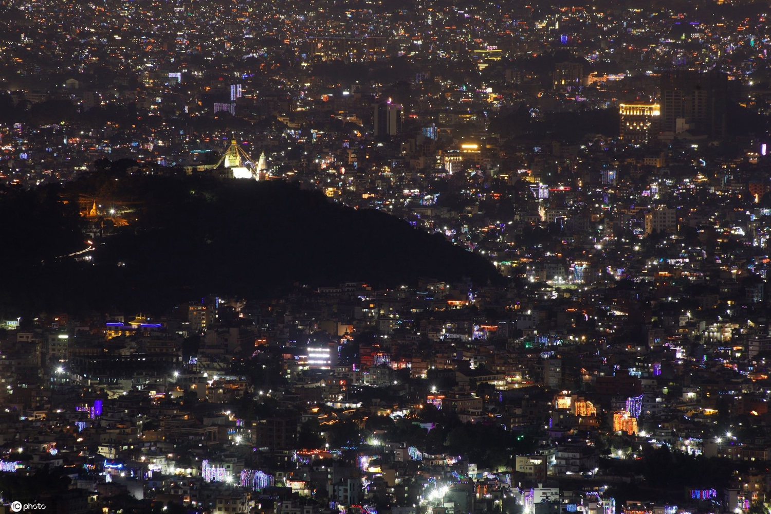 当地时间2020年11月14日,尼泊尔加德满都,印度教盛大节日排灯节当晚,加德满都全城灯火通明。