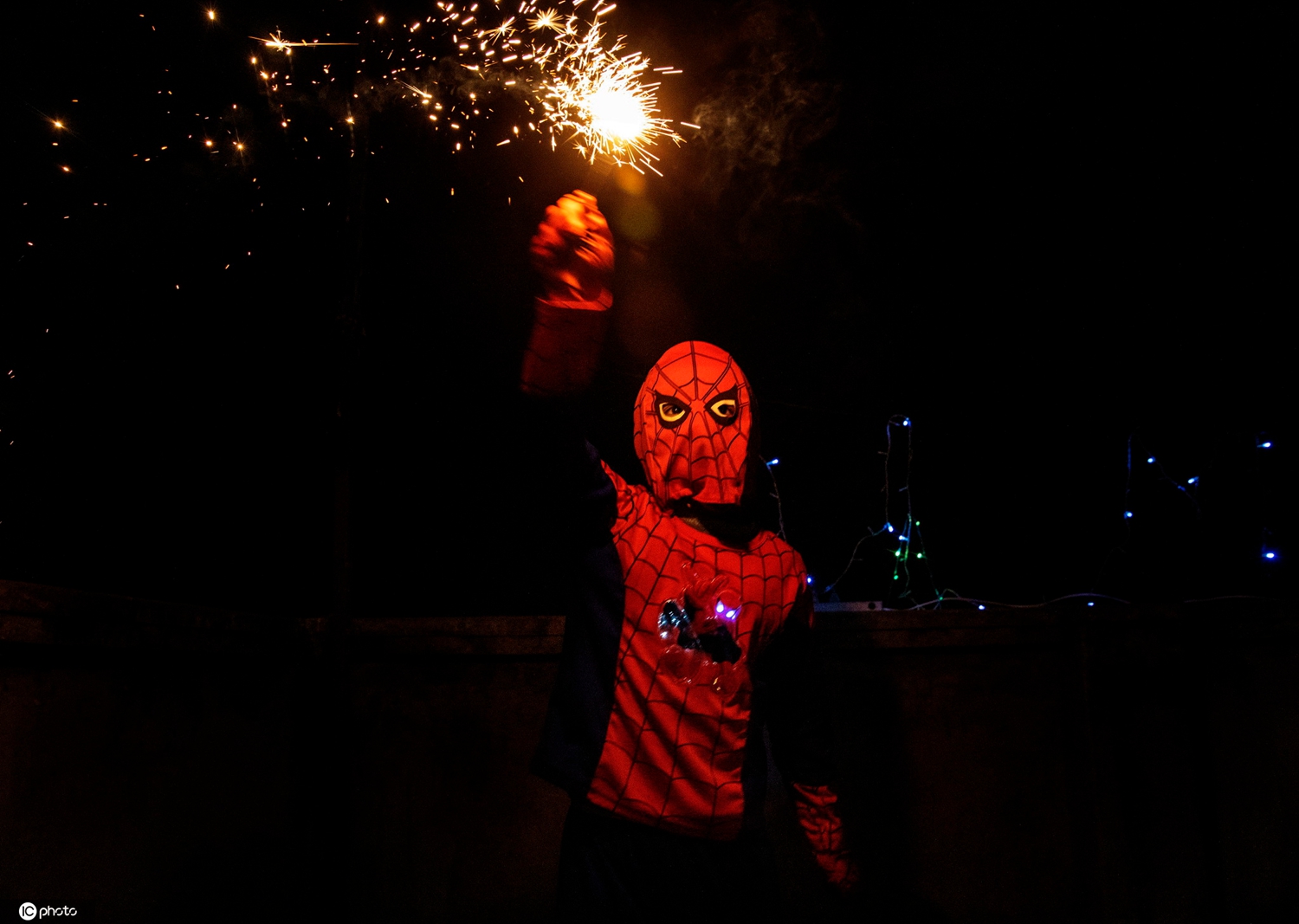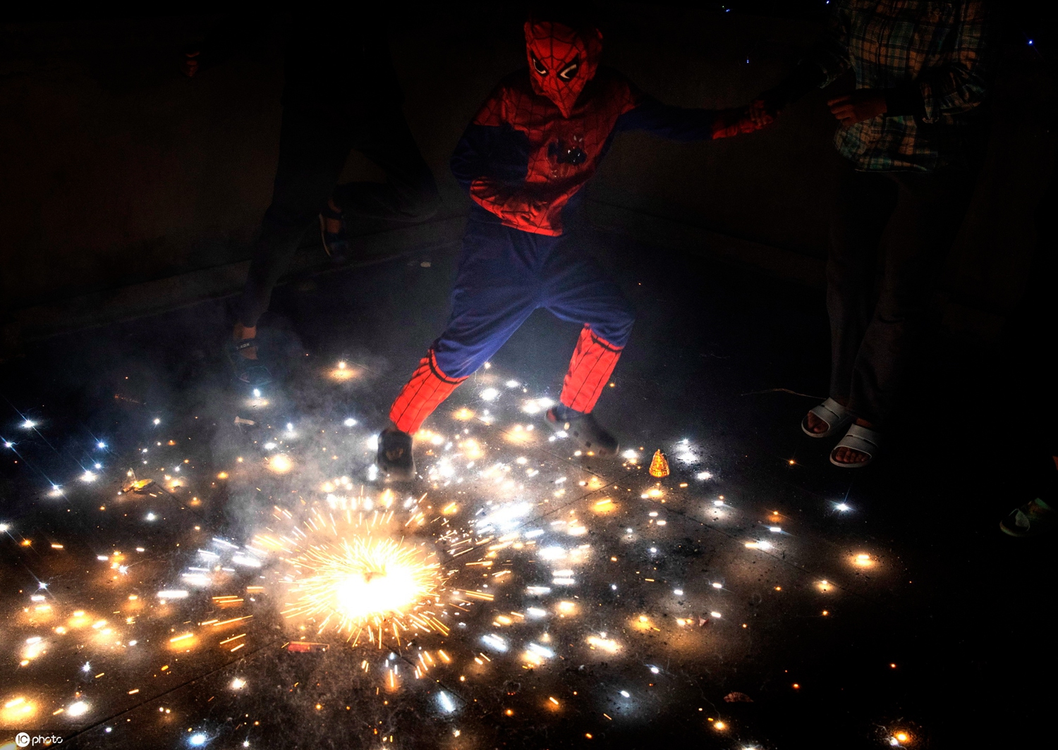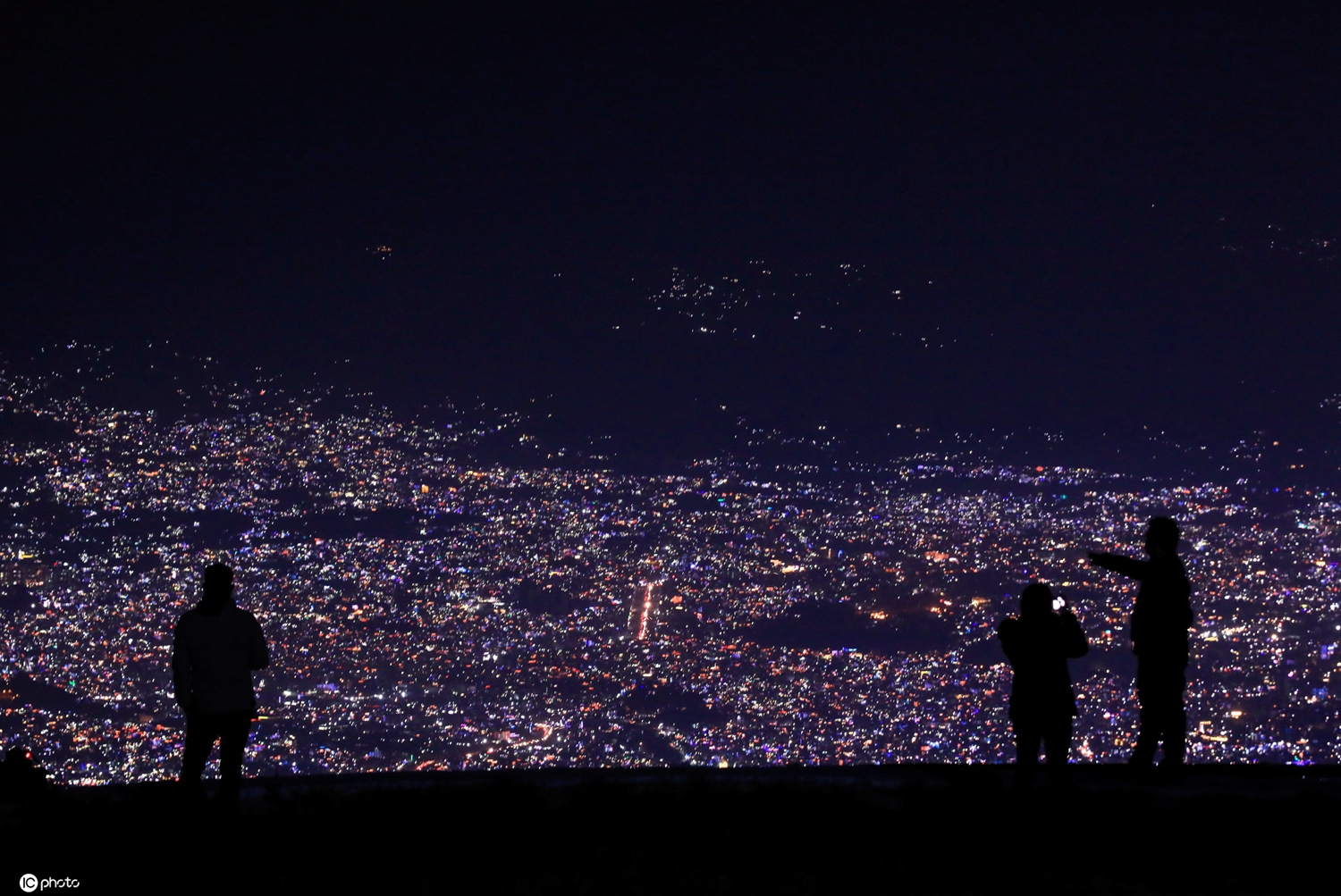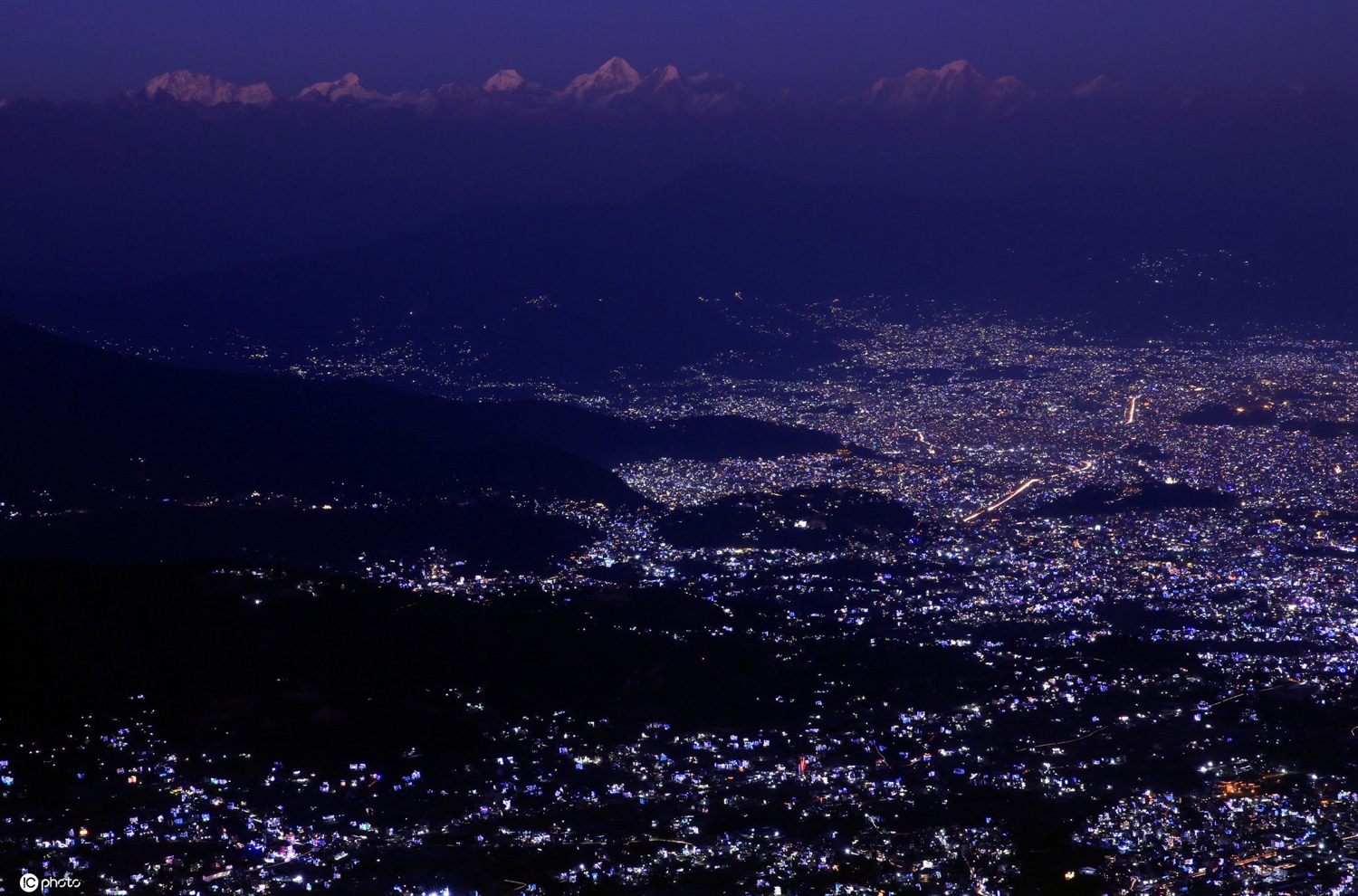当地时间2020年11月14日,尼泊尔加德满都,印度教盛大节日排灯节当晚,加德满都全城灯火通明。