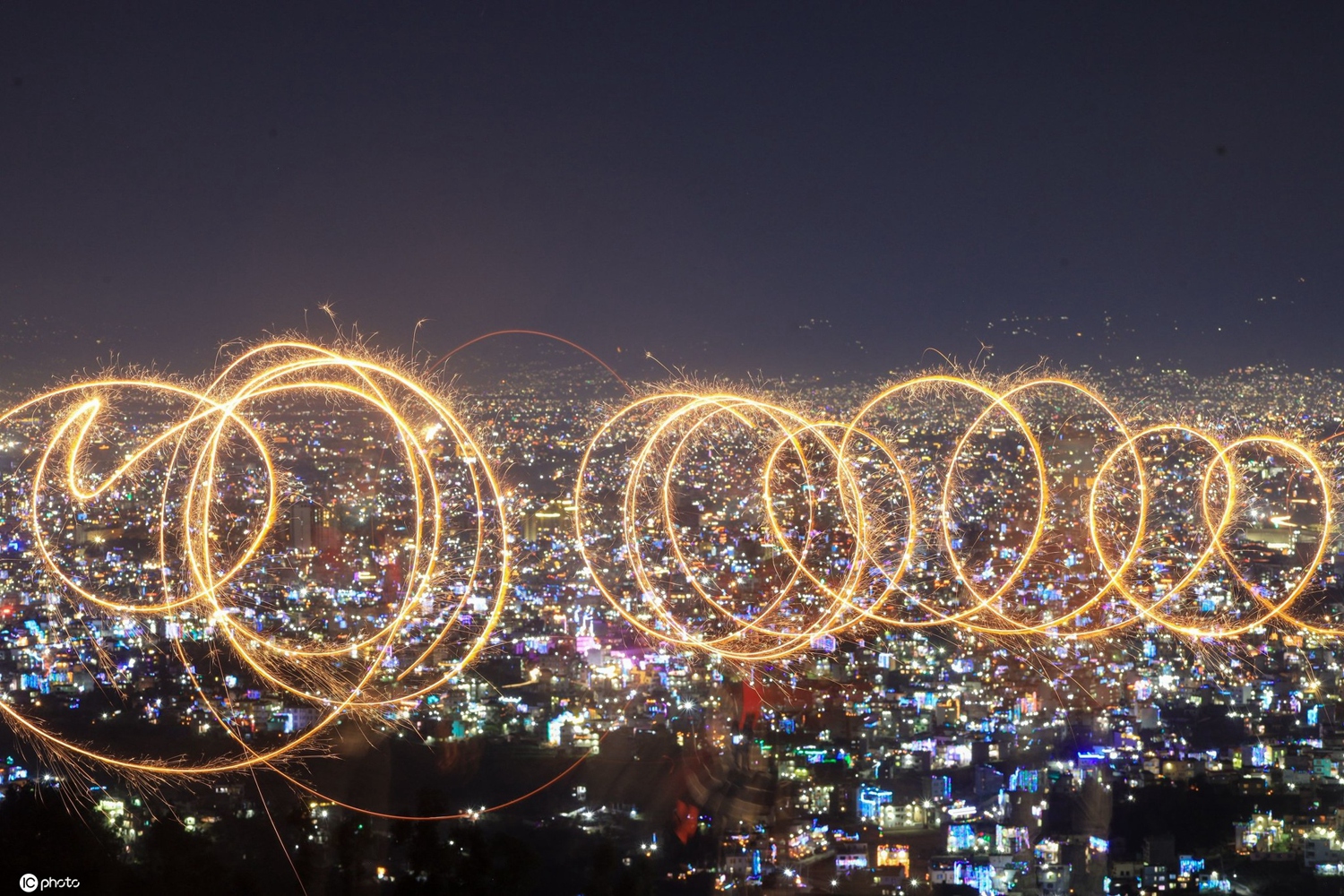 尼泊尔庆祝排灯节 加德满都灯火通明