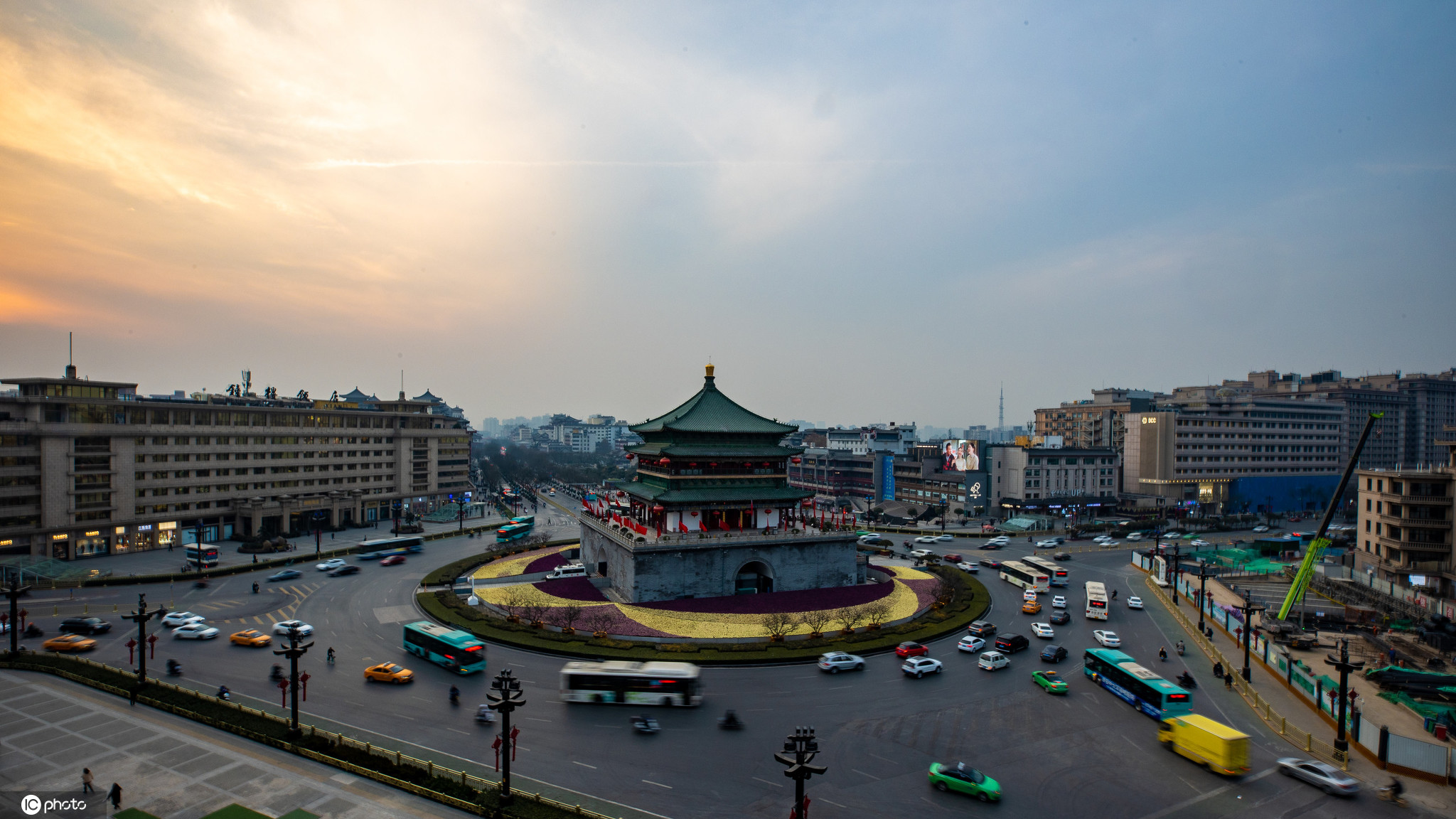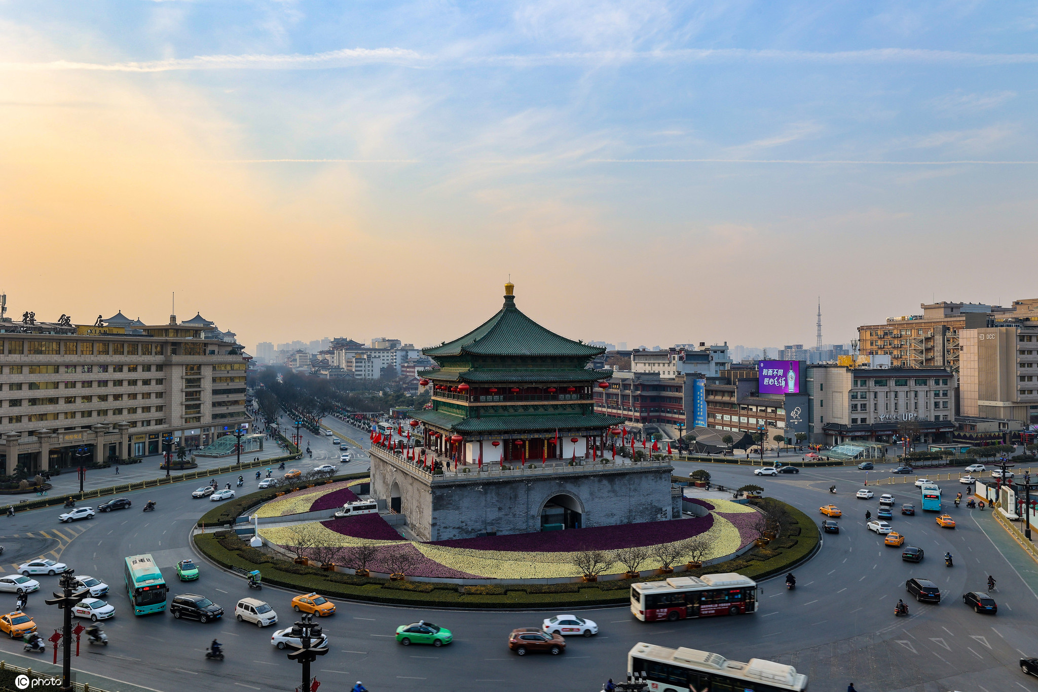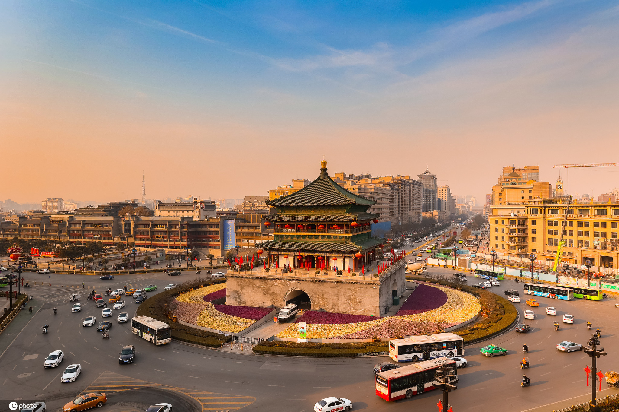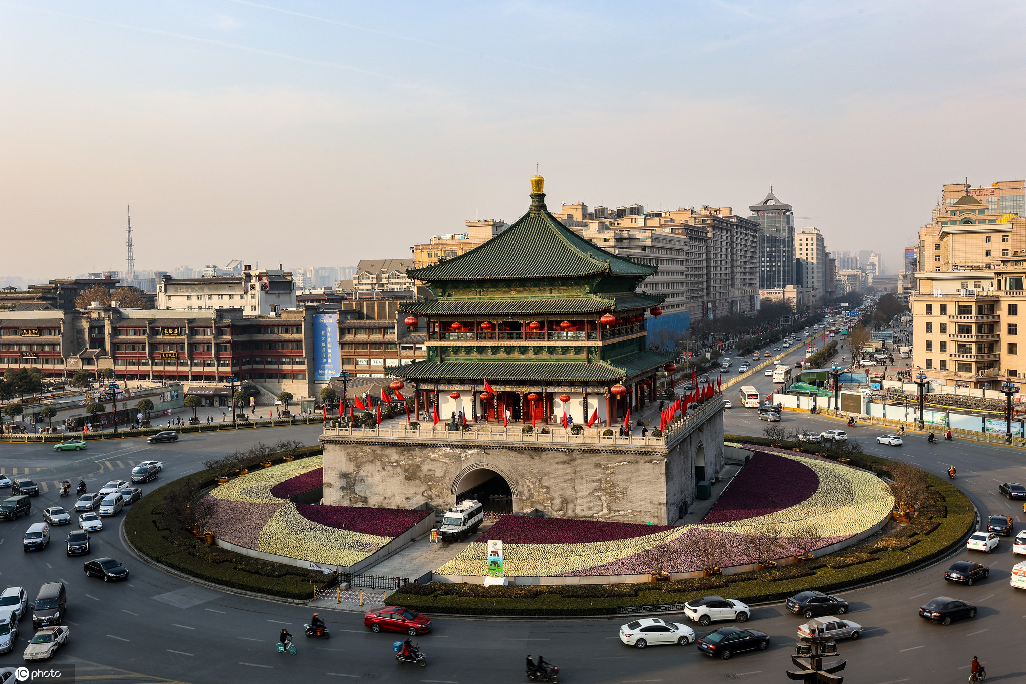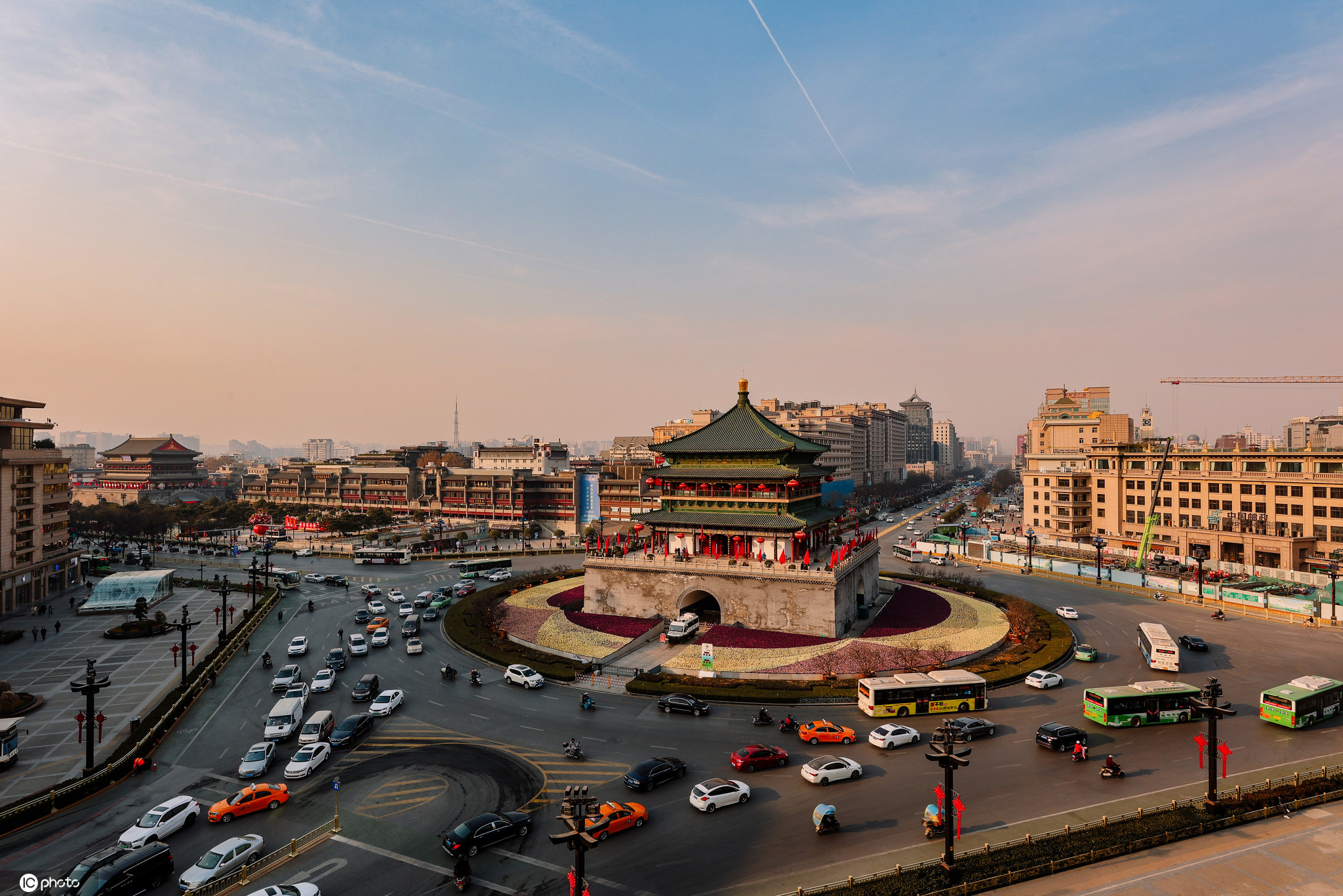 2021年1月19日,陕西西安。西安钟楼白天和夜晚的景色。