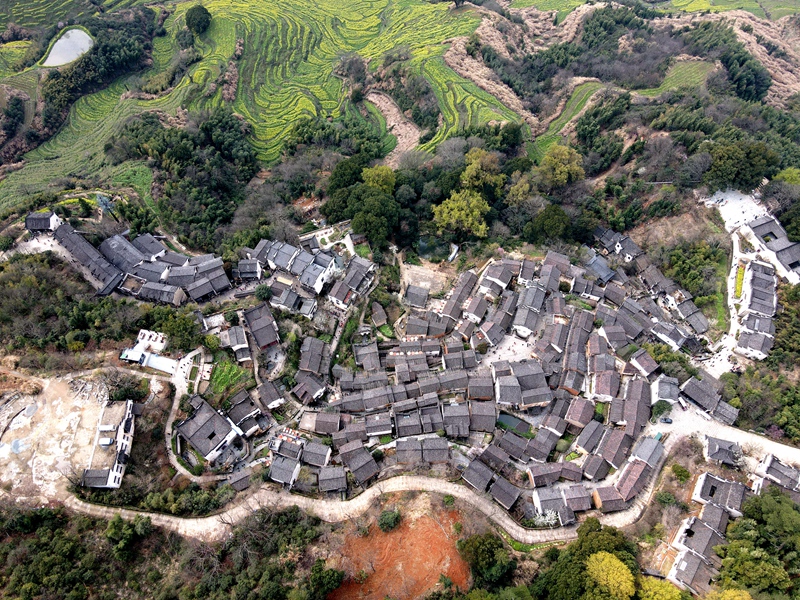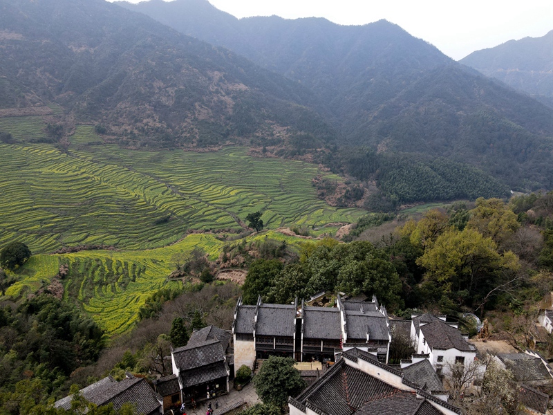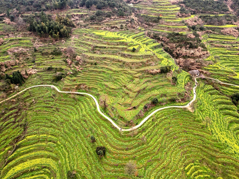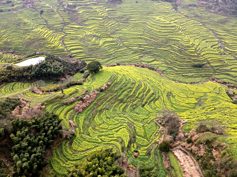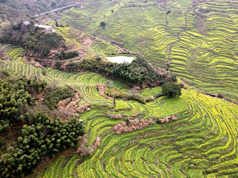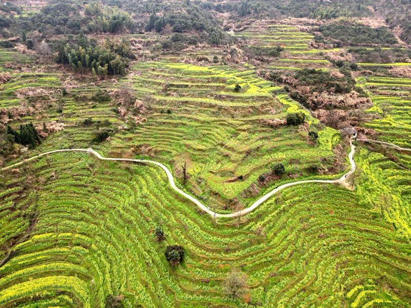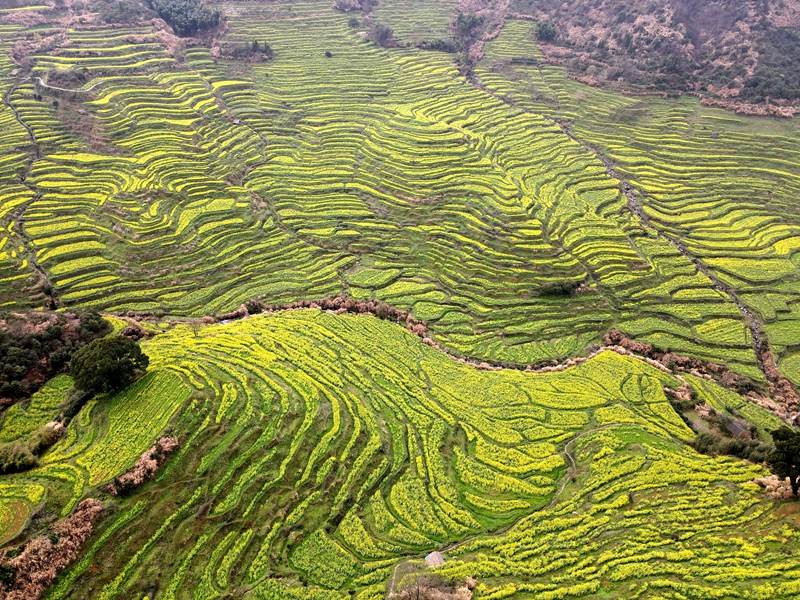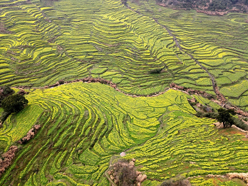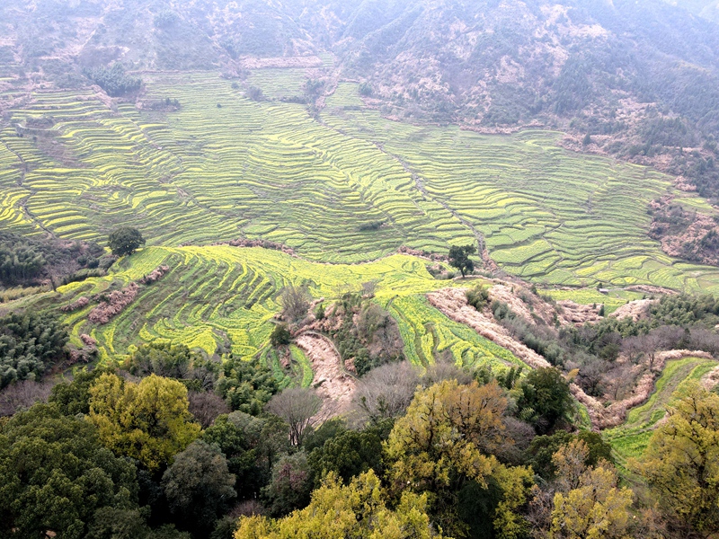 2021年3月10日,篁岭景区,位于江西省上饶市婺源县,层层叠起的油菜花梯田,流光溢彩,是不可多得的视觉盛宴,古村落徽派建筑的精美和黄澄澄的油菜花开,相交辉映,如诗如画就是它的魅力所在。