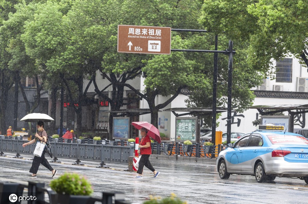 2021年7月24日,浙江绍兴,受台风“烟花”影响,绍兴迎暴雨天气。