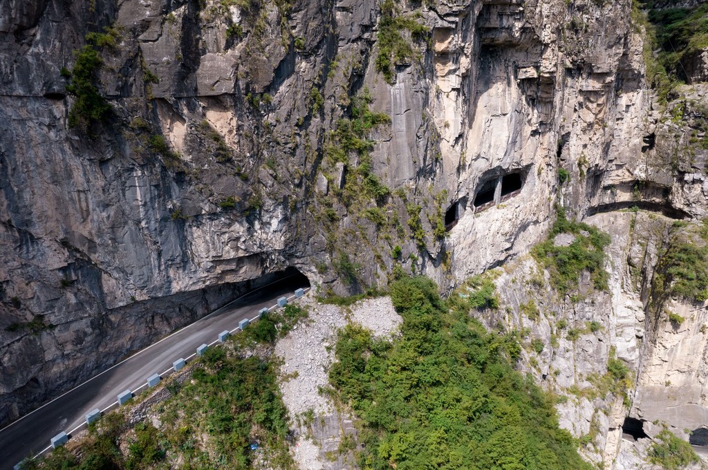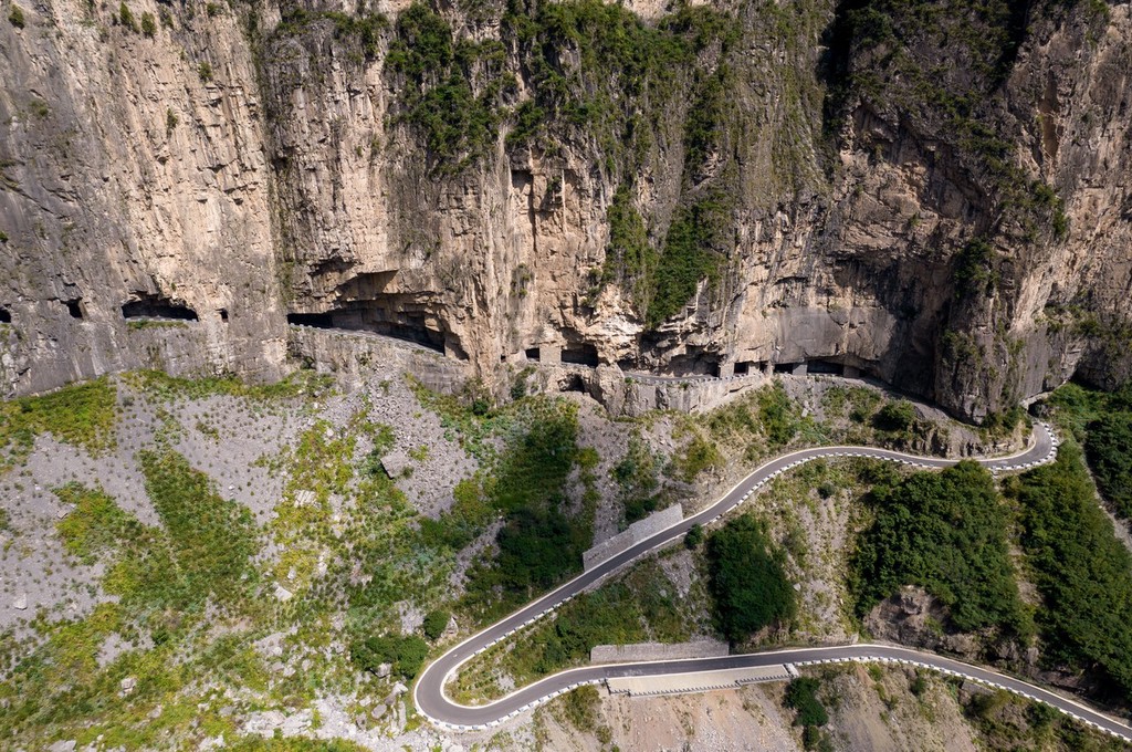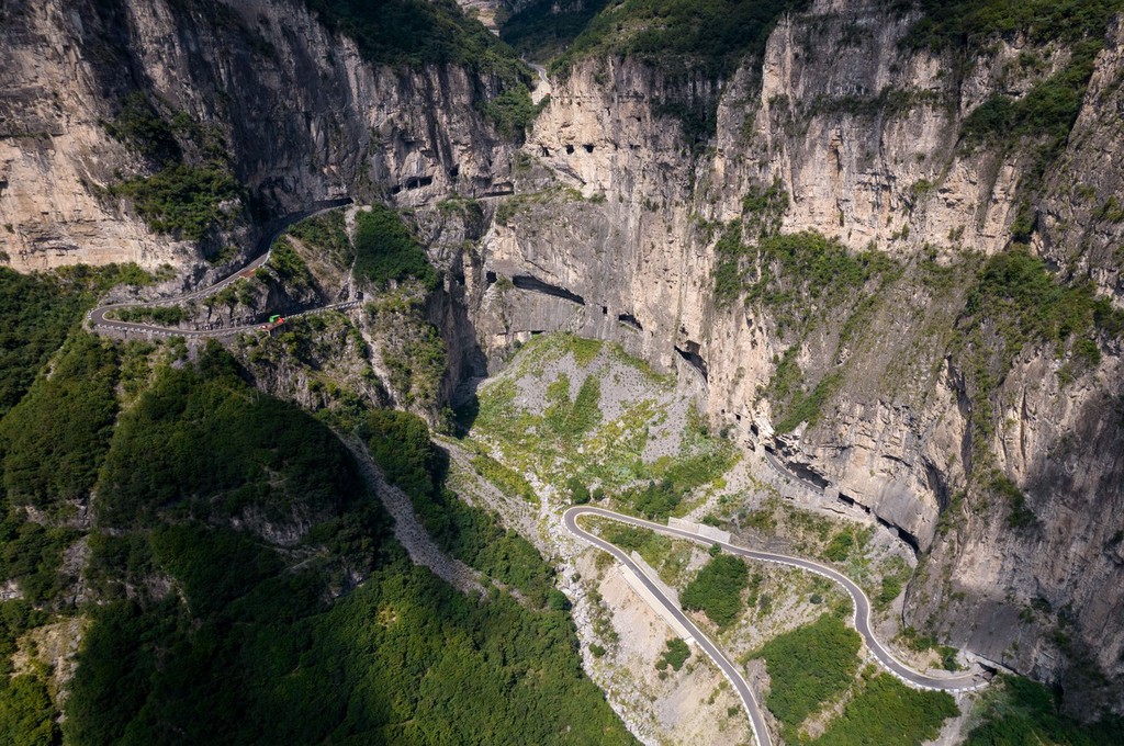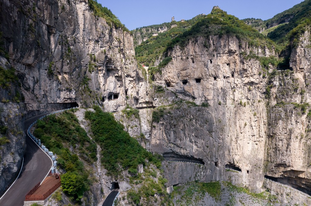 2022年9月16日,山西省晋城市陵川县,航拍太行山锡崖沟挂壁公路。