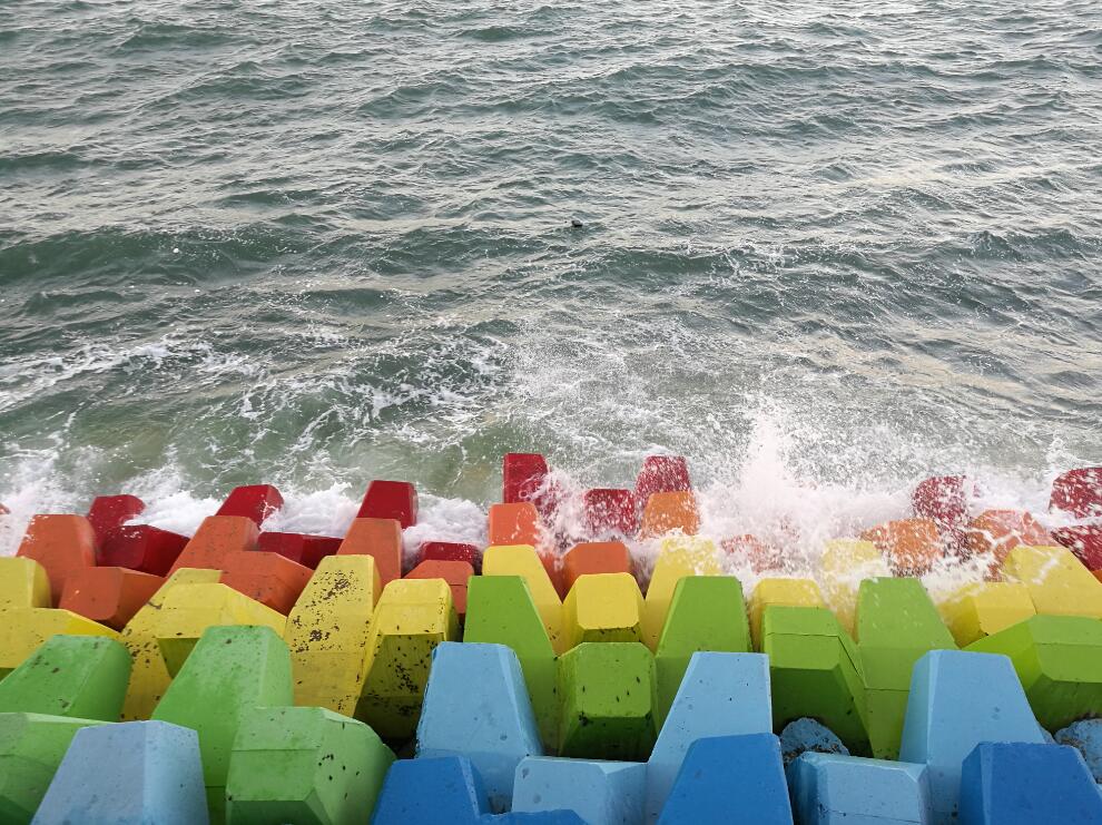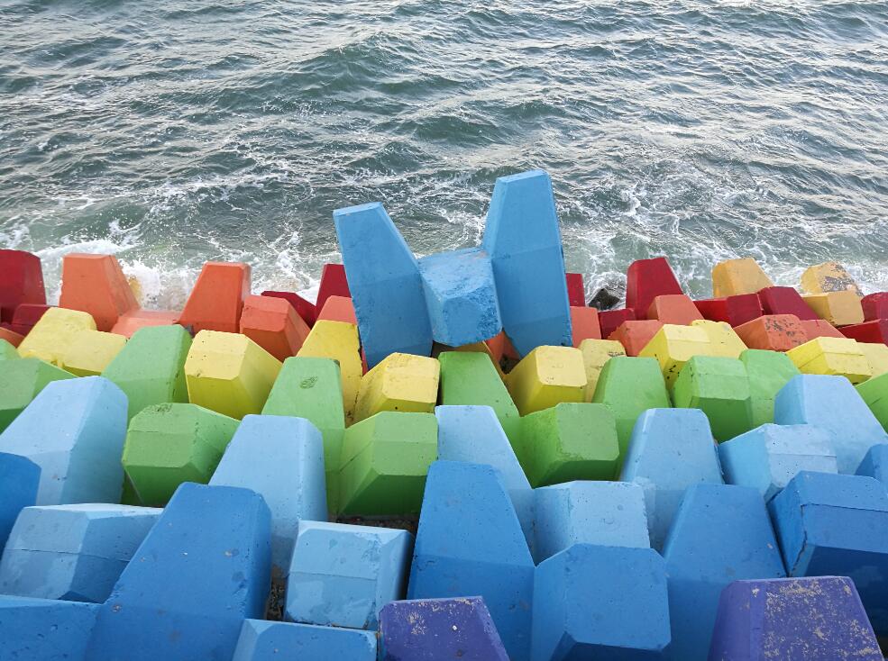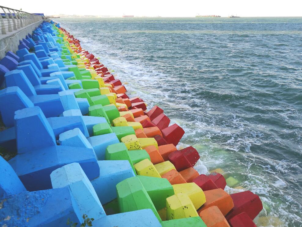 2019年6月3日报道,山东青岛维多利亚湾有个“彩虹堤坝”,因其颜色亮眼吸引了许多众人围观,也一度成了当地象征爱情的打卡圣地。图片署名: 鱼羊书生