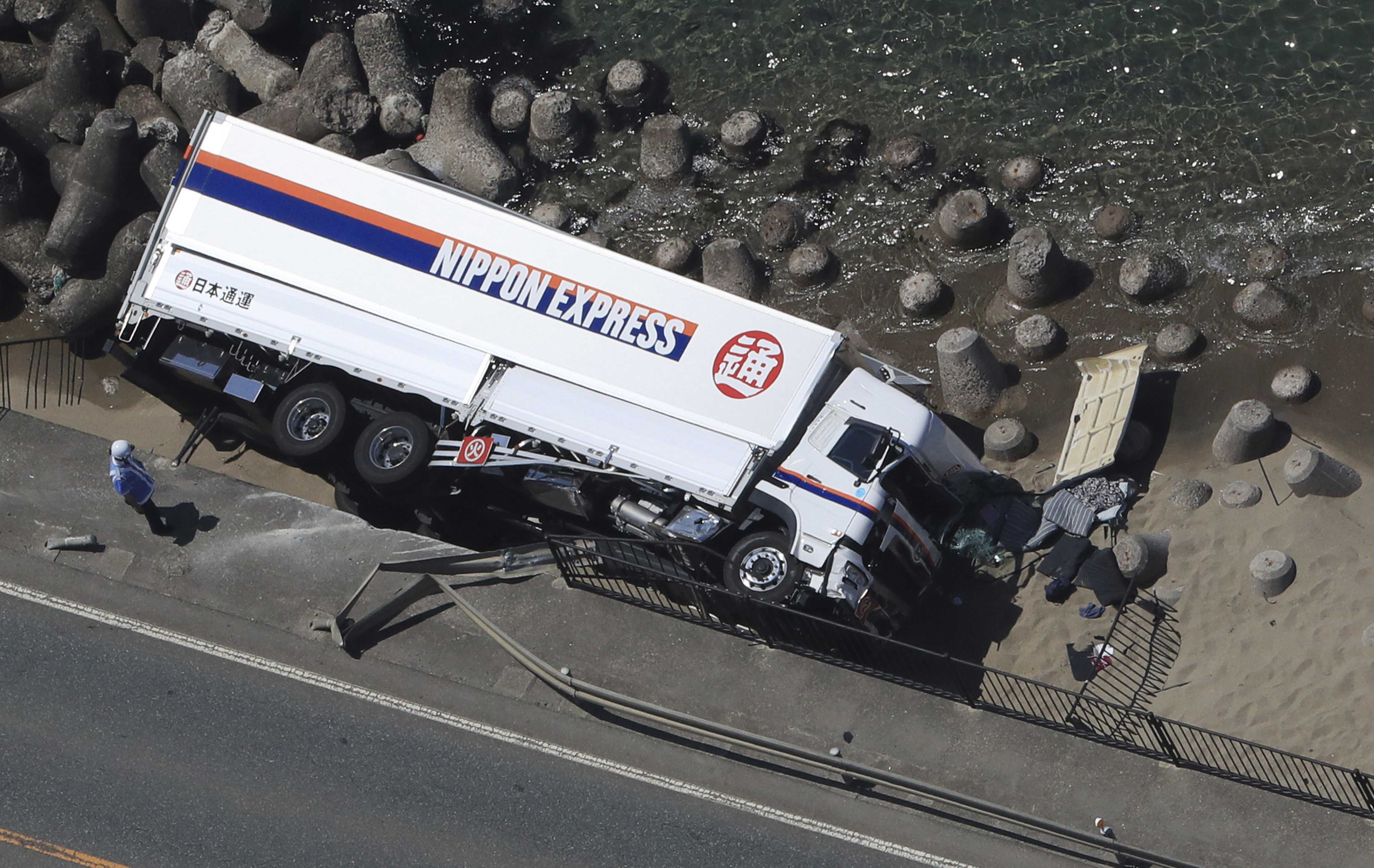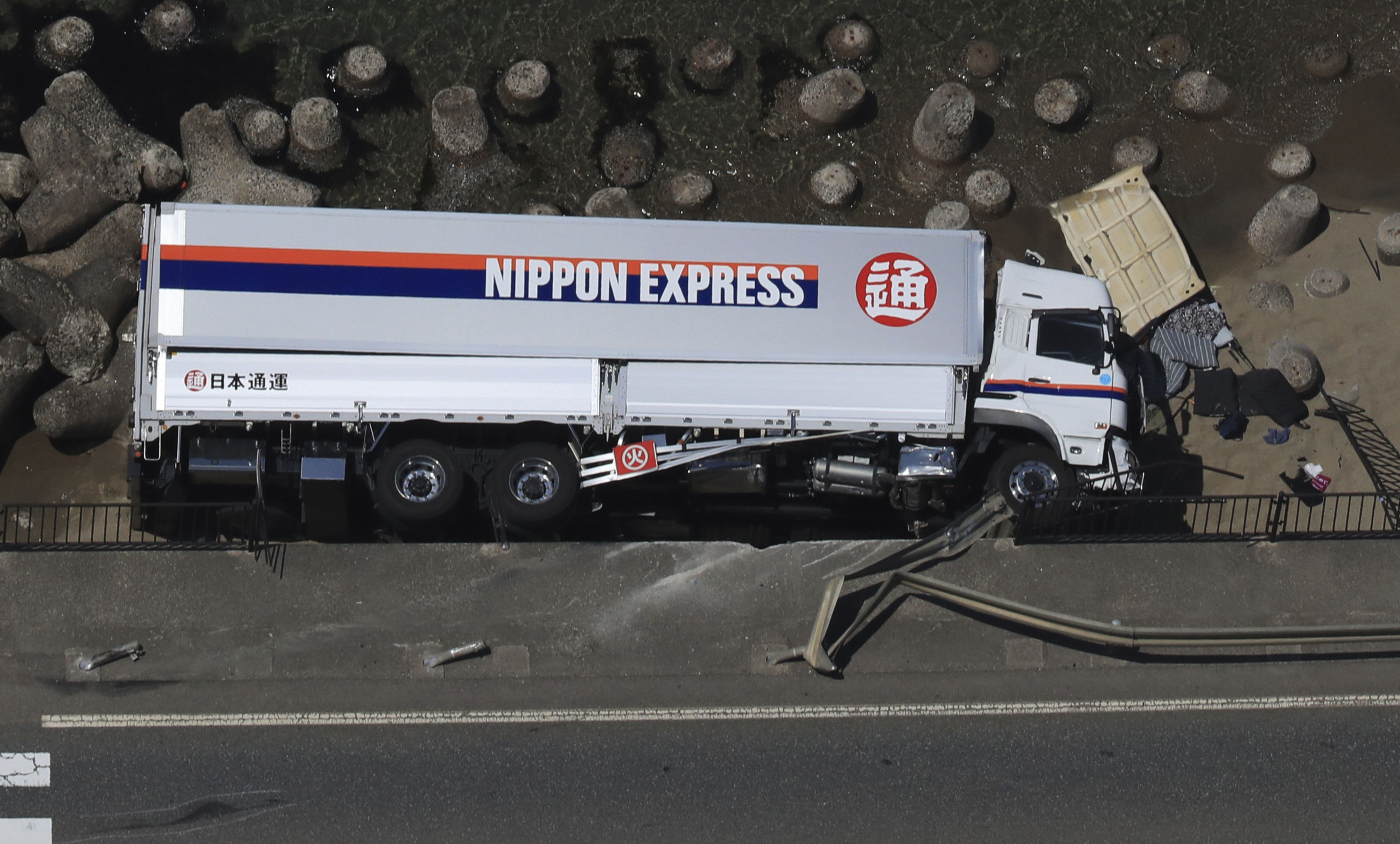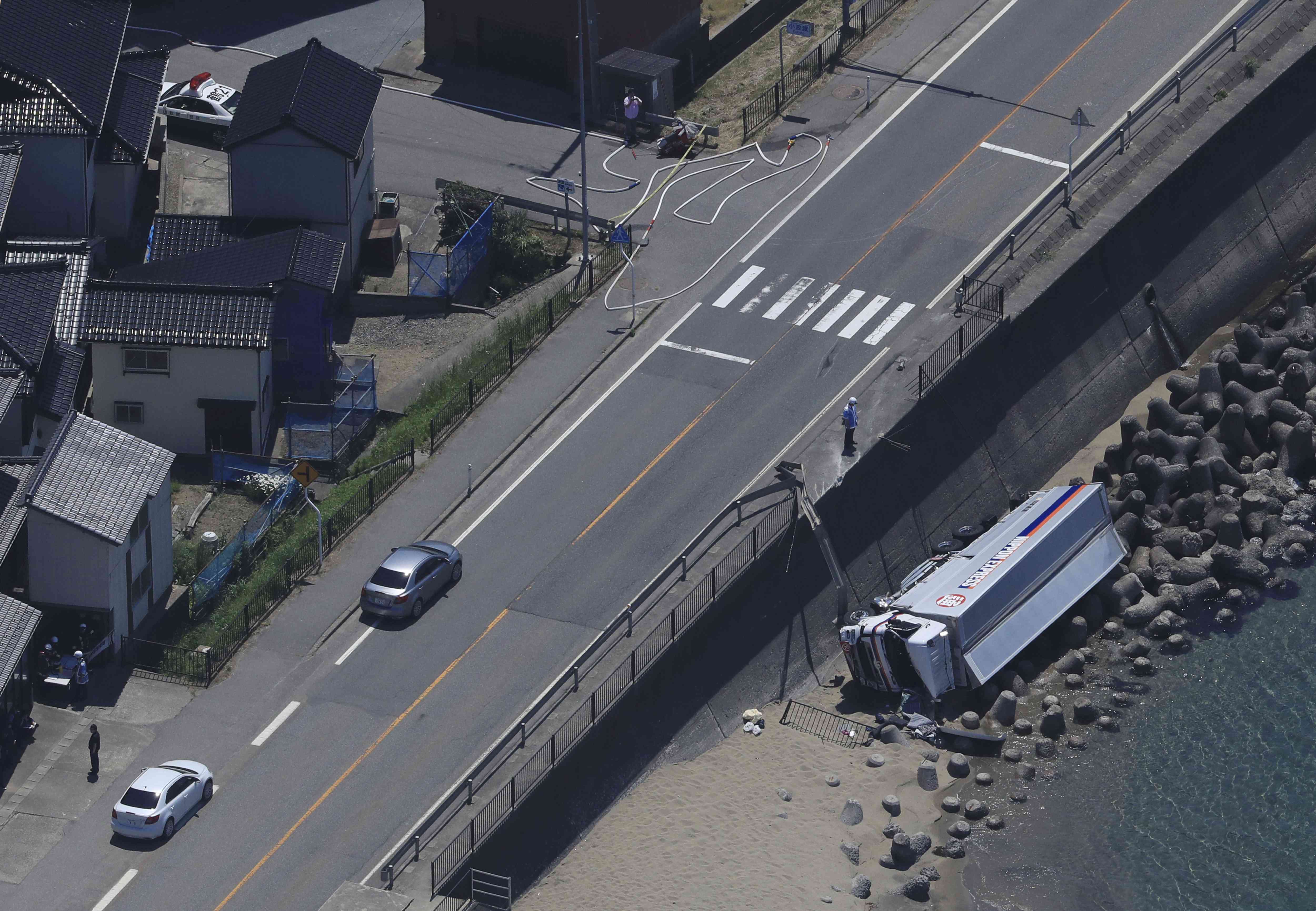 当地时间2019年5月25日,日本山形县鹤冈市,25日上午,日本山形县发生一起交通事故。一辆载有10吨炮弹的货车滚落下5米高的桥,所幸未爆炸。