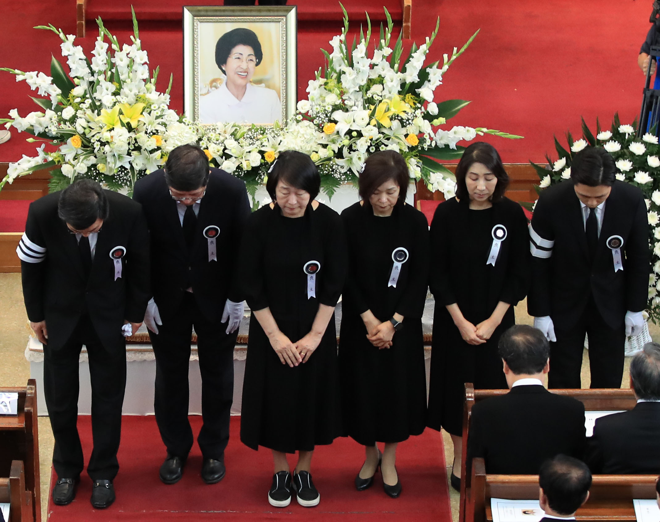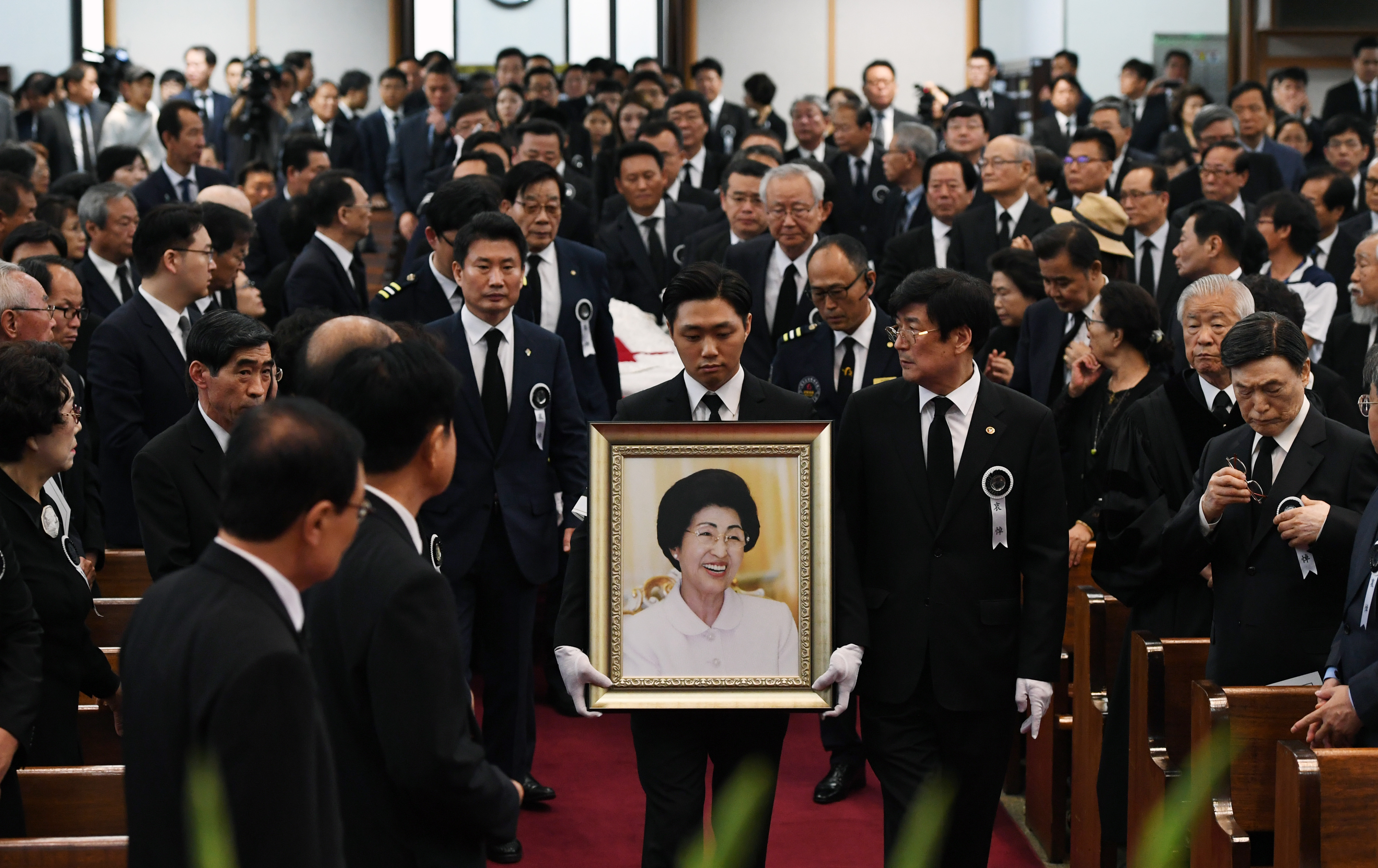 当地时间2019年6月14日,韩国首尔,韩国已故前总统金大中的夫人李姬镐女士的悼念仪式在国立首尔显忠院举行,韩国官员、各阶层市民均到场吊唁,仪式上还宣读了朝鲜最高领导人金正恩发来的唁电。