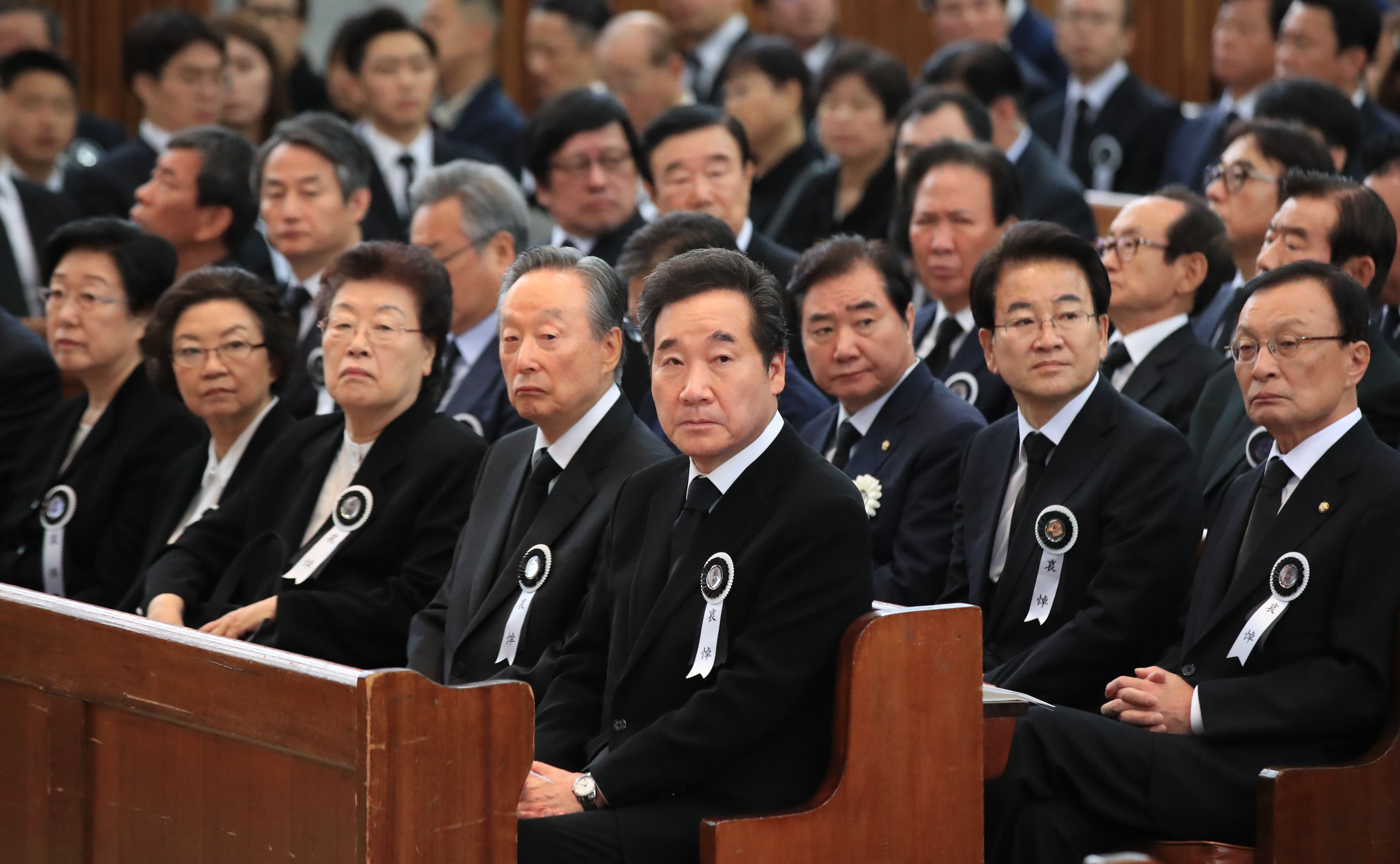 在悼念仪式上,葬礼共同委员长、国务总理李洛渊代表政府朗诵祭文,国会议长文喜相和朝野5党代表发表悼念词,金正恩发来的唁电也在悼念仪式上朗诵。