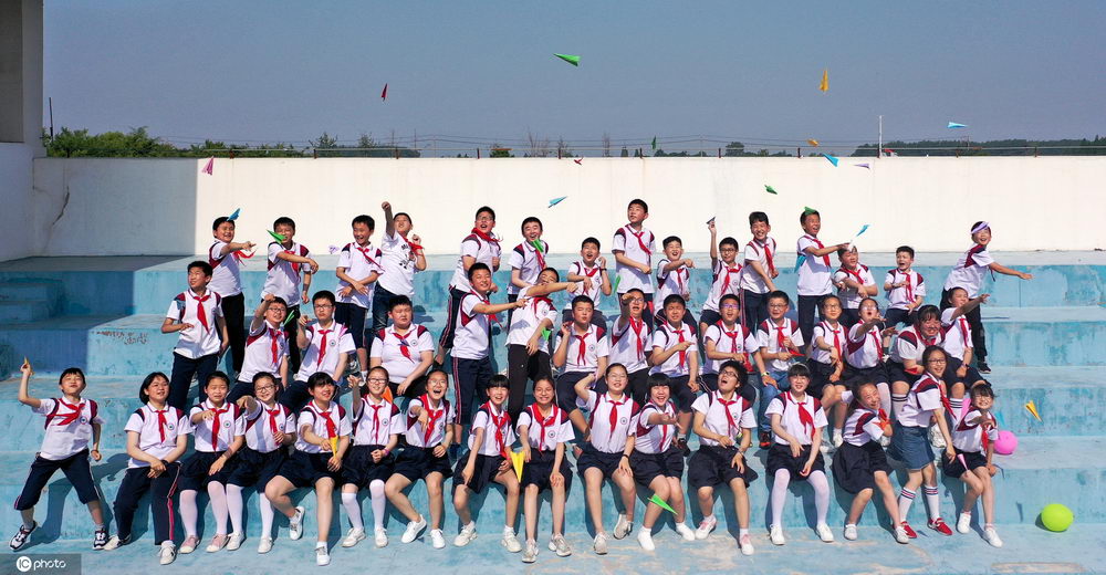 江苏淮安:小学生拍摄创意毕业照 留住美好童年