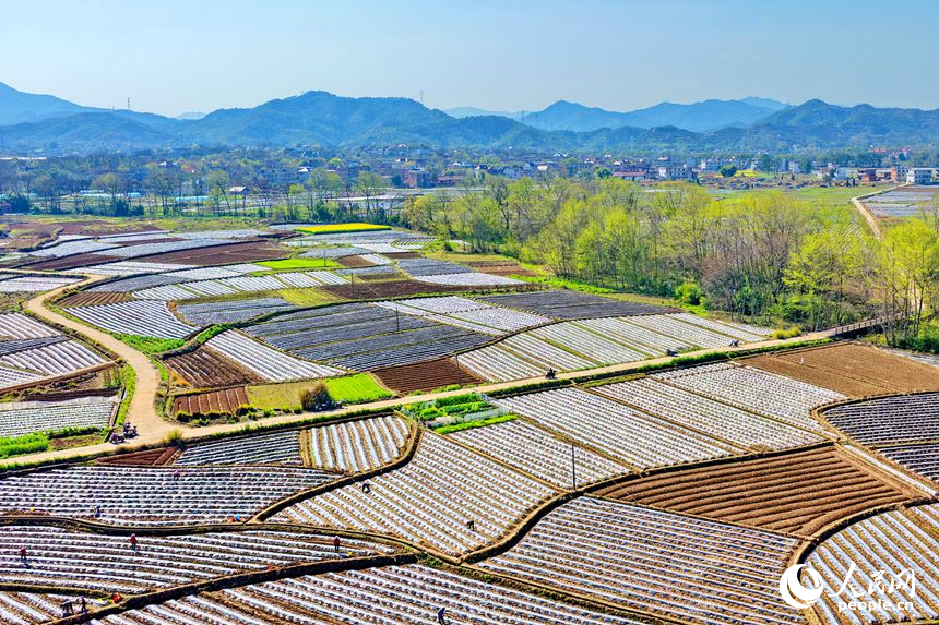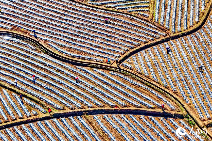 人民网兴国3月18日电 (记者朱海鹏)近日,江西省赣州市兴国县高兴镇的一处种植基地,田垄成行、阡陌纵横,村民穿行其间,忙着栽种蔬菜、瓜果等农作物。 村民忙着栽种蔬菜、瓜果等农作物。人民网记者 朱海鹏摄