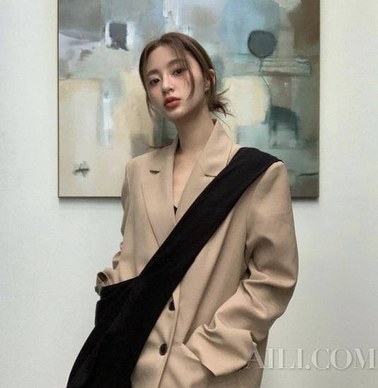 白皮女生可以大胆尝试oversize的燕麦色西装,会收获与深色西装截然不同的新风格。