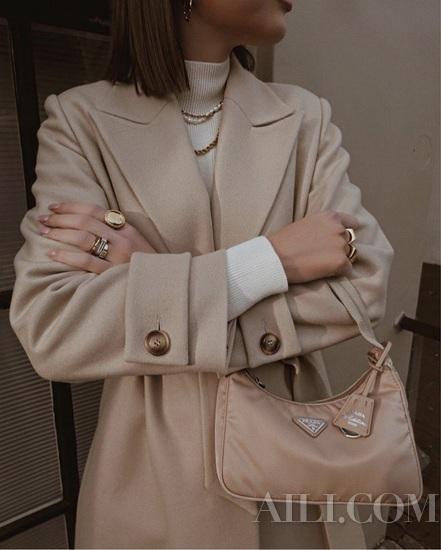 一件廓型利落的燕麦色大衣也很适合冬日的沉闷,打破灰暗的冬日天空,溢出如午后暖阳般的清淡的明媚感。在搭配上,更适合在燕麦色大衣中选择浅色系单品,要比深色系单品更有表现力。