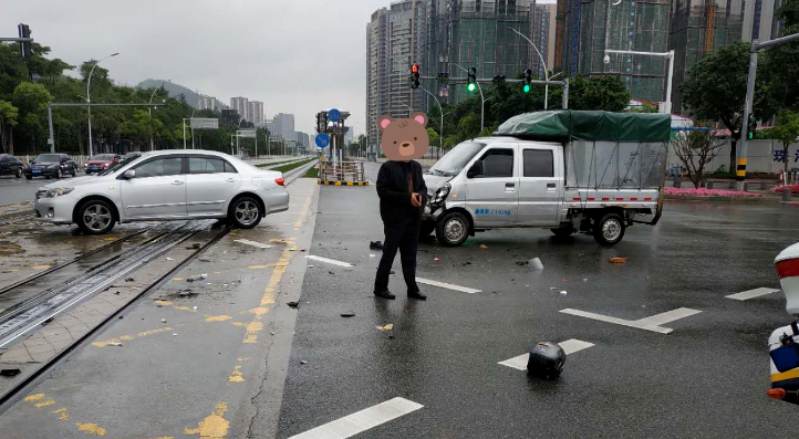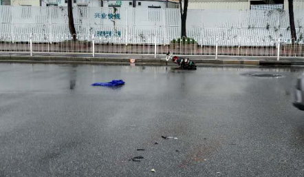 一时间,郭先生吓坏了,赶紧下车查看情况,一眼瞧见湿漉漉的地面晕开一抹淡红的血迹,电动自行车司机身着蓝色雨衣,躺倒在地上表情痛苦,头部也流着不少血,身边散落零件碎片。郭先生心里紧张,有些不敢上前,但还是第一时间拨打了120并报了警。▼