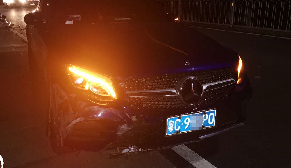 4月10日晚上8点40分,陈先生驾驶粤C9××P0号蓝色奔驰小车沿大肖线北往南行驶,拐了个小弯道来到大叔农庄前的路口。