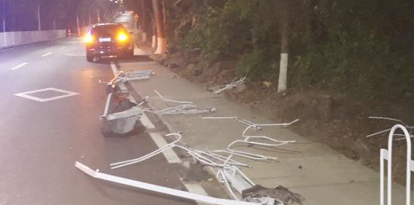 这段路是双向单车道,刚好这时对向驶来一辆小车。昏暗的街道亮着一排路灯,光晕摇曳下,陈先生有些估不准两车距离。担心撞上,他急忙向右打方向避让,不料方向打太过,奔驰小车向右偏,“咔咔咔”连铲六卡护栏。▼
