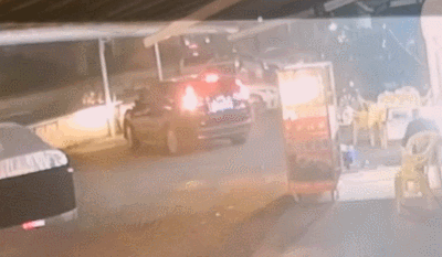 突然,“嘭”的一声巨响,把店员给吓了一跳,只见一辆粤CH××32号黑色本田小车的车尾撞歪了堆满火炭的烧烤炉,桌上的食物也掉在了地上,小车司机意识到自己撞上东西,立即踩下刹车。▼