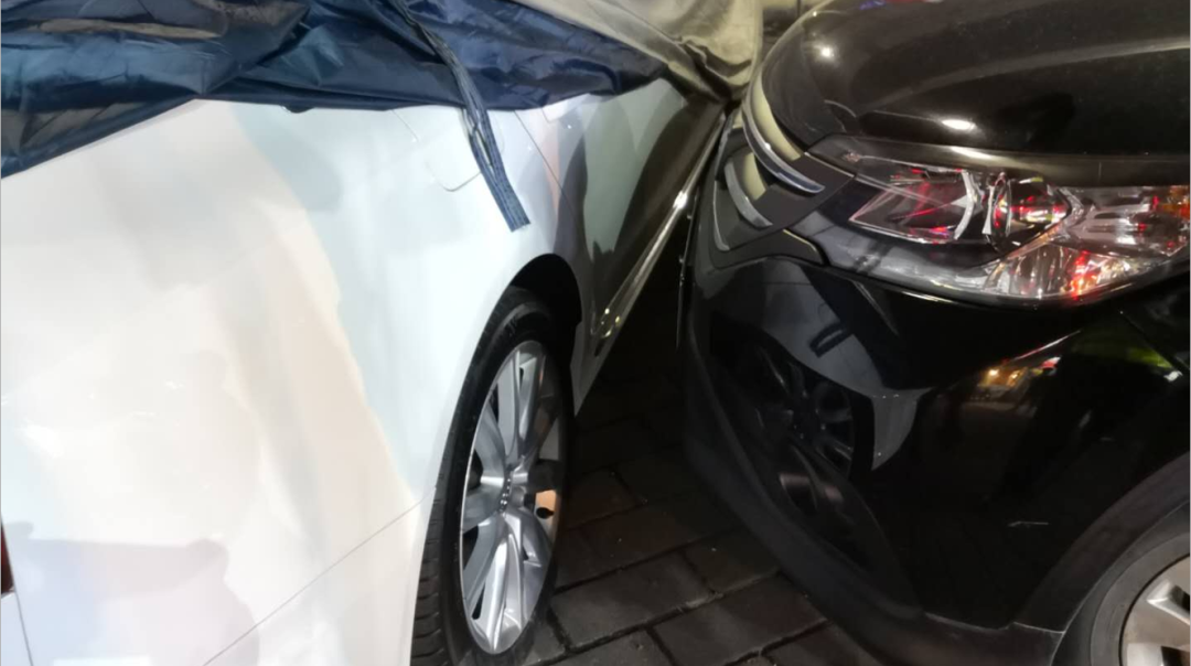 凌晨2点大伙都自行离开后,陈某又独自坐了一会,才叫了代驾,但代驾说找不到车子,陈某便想把车开出停车场。没想到,把烧烤档的炉子给撞到了,还怼了别人的车,陈某情绪一下就奔溃了。好在速度不快,奥迪小车也包着防护罩,没有造成太大的车损。▼