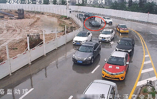 10点07分,超跑从金凤路右转进入港湾大道。▼