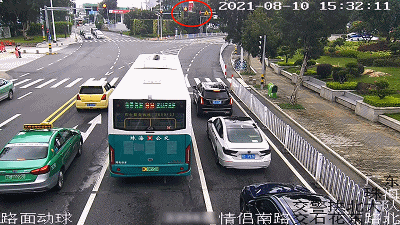 8月10日下午3点31分,情侣南路交石花东路路口 北往南方向亮起红灯,三条车道的车辆都齐刷刷地停了下来。但交警一看,却发现不对劲。▼