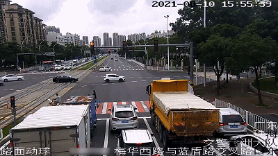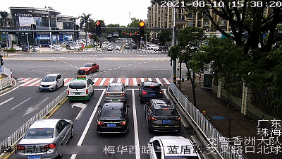 8月10日下午3点38分,不少车辆在梅华西路交蓝盾路路口 北往南方向等红灯。路口最右侧是右转车道,排在停止线前的黑色小车却迟迟不敢右转,挡住了后面好几辆车。一直等到绿灯亮起,黑色小车才右转驶入梅华西路。▼