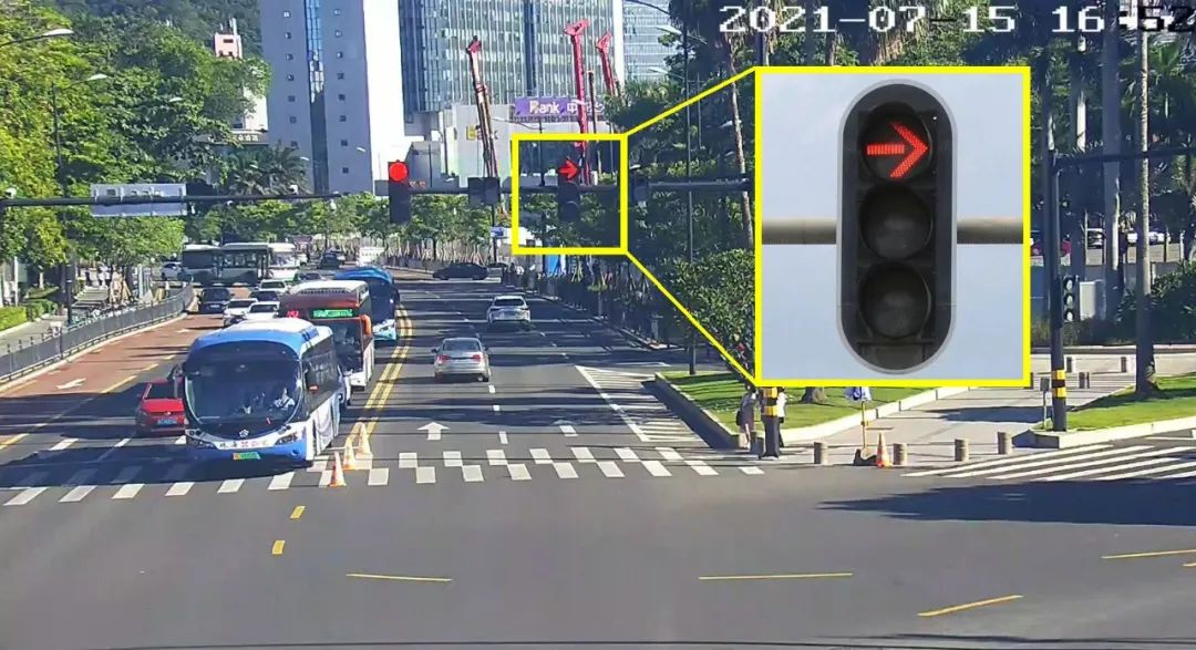 右转车道由全屏灯控制