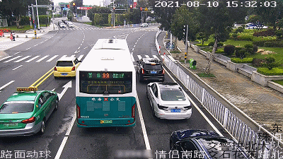 另外一个很多司机不敢右转的路口,是紫荆路紫荆花坛 。车辆沿紫荆路北往南方向行驶,如果遇到绿灯,右转车辆会“唰唰唰”往前开。▼