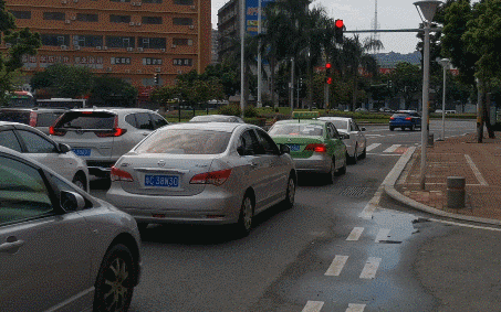 8月10日下午3点55分,梅华西路交蓝盾路路口 东往西方向,也有一辆白色小车遇到红灯不敢右转。只见白色小车在路上一点一点往前挪动,但司机就是鼓不起勇气转过去。▼