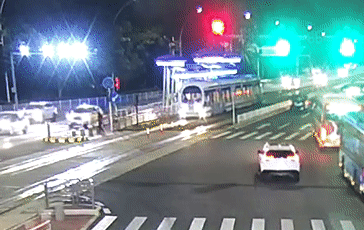 张警官立即调取监控视频,看见晚上8点38分,就在有轨电车缓缓驶入路口时,起亚小车同样沿梅华路东往西方向行驶至路口,司机好像没看到电车,猛地往左打方向进入路口,结果起亚车身左侧撞到有轨电车车头,并被电车推行了一米多远。