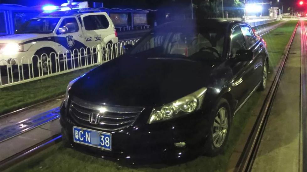 今年6月27日凌晨,司机蔡某醉酒驾驶一辆粤CN××38号黑色雅阁小车回家,半路竟然冲上了轨道,差点撞上正在作业的工人。