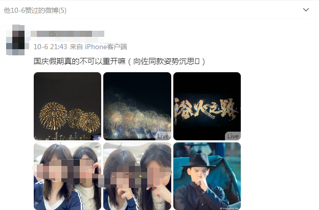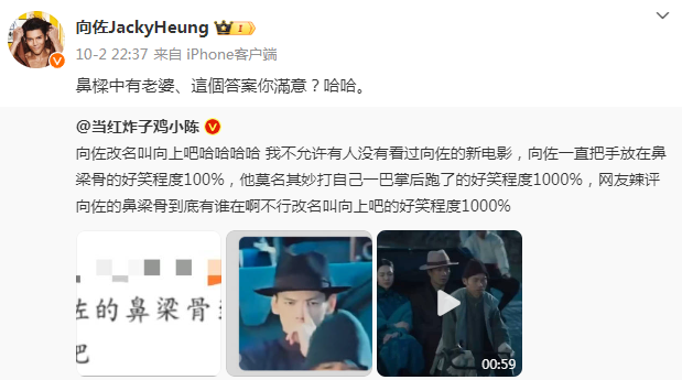 10月6日,向佐还点赞了网友模仿他的微博。