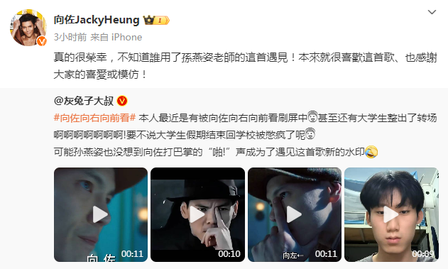 10月10日,向佐转发了该微博,并回应称:“真的很荣幸,不知道谁用了孙燕姿老师的这首遇见!本来就很喜欢这首歌、也感谢大家的喜爱或模仿!”